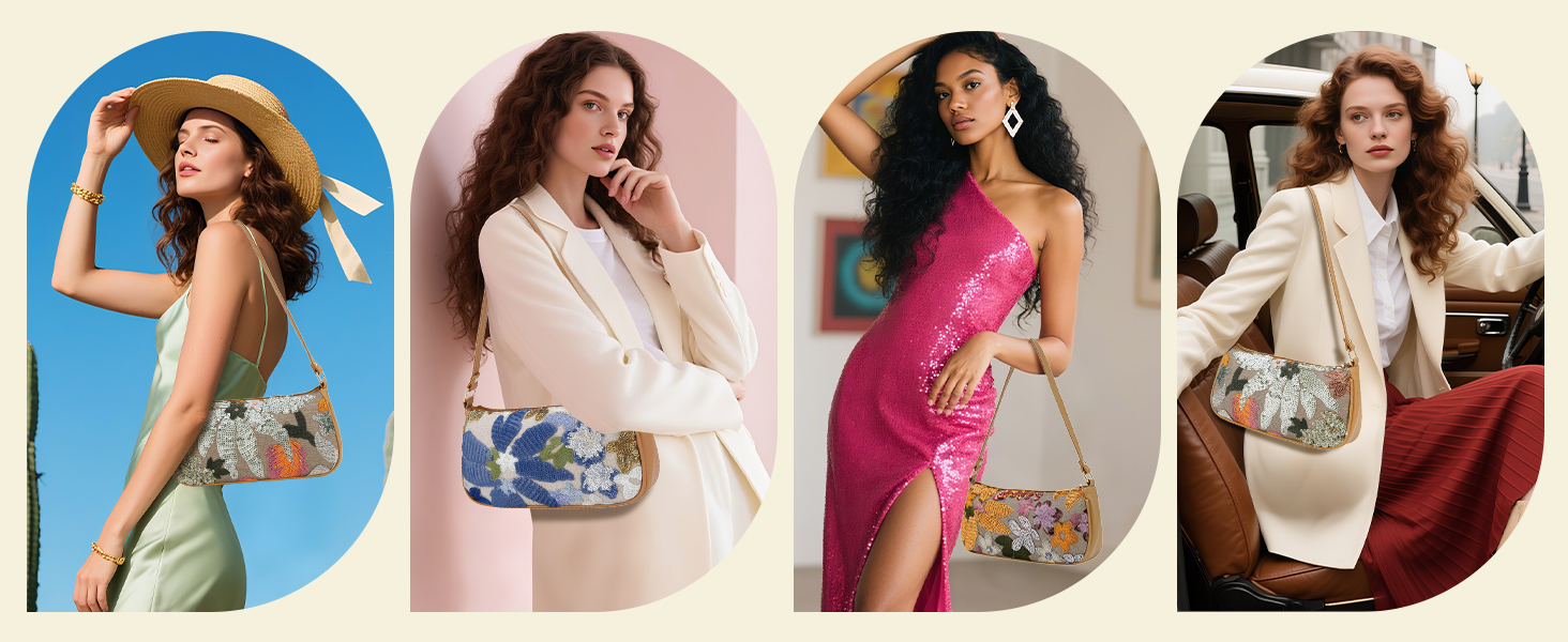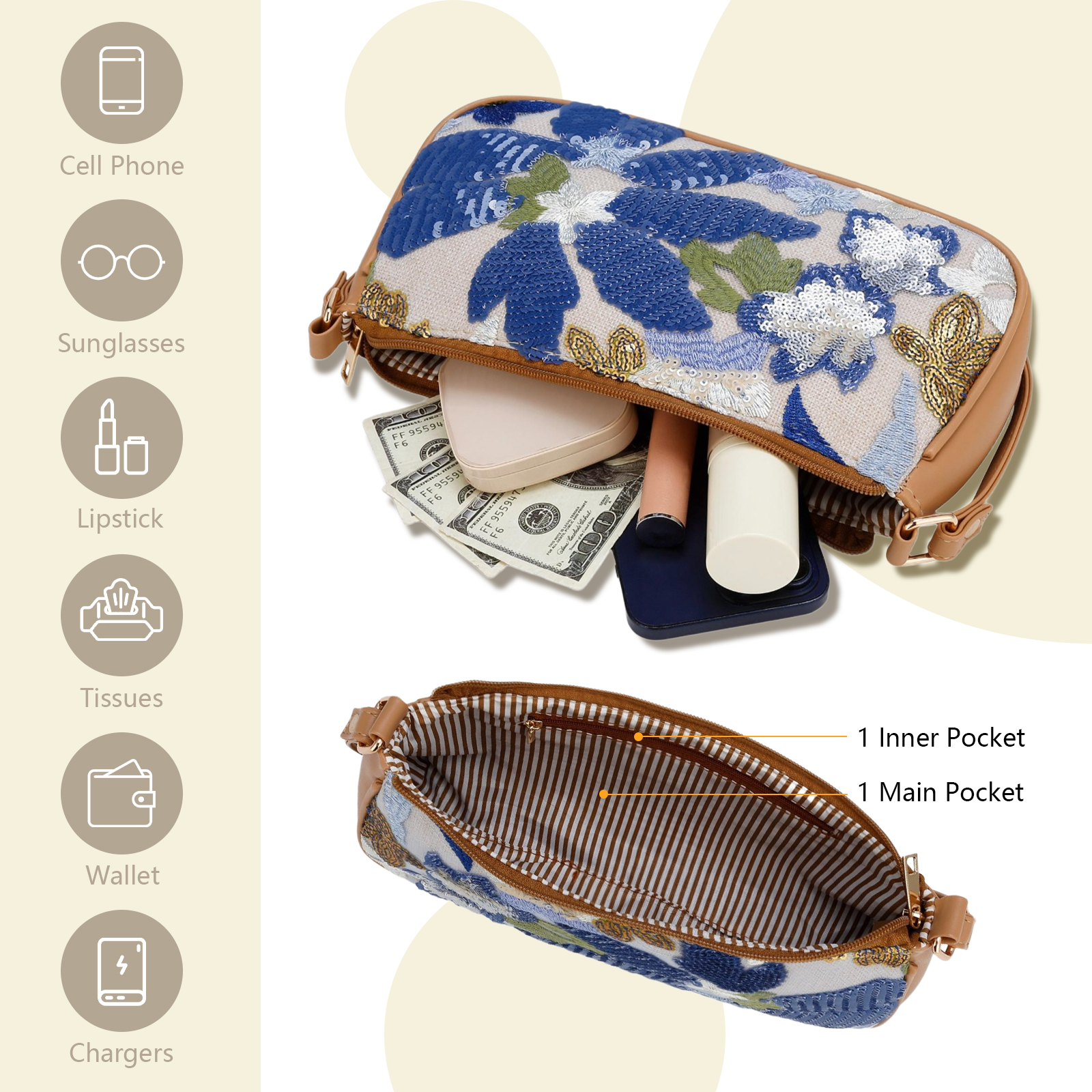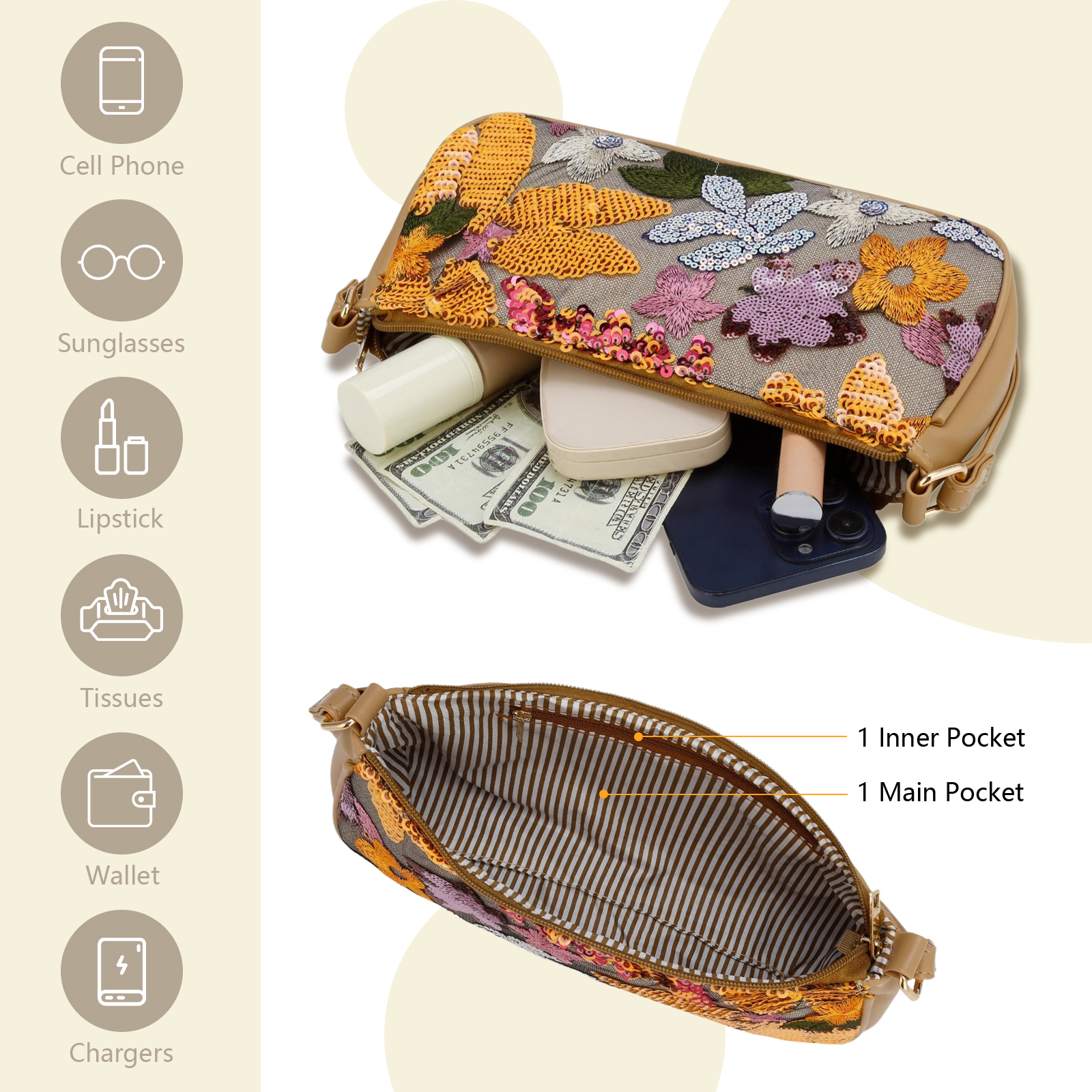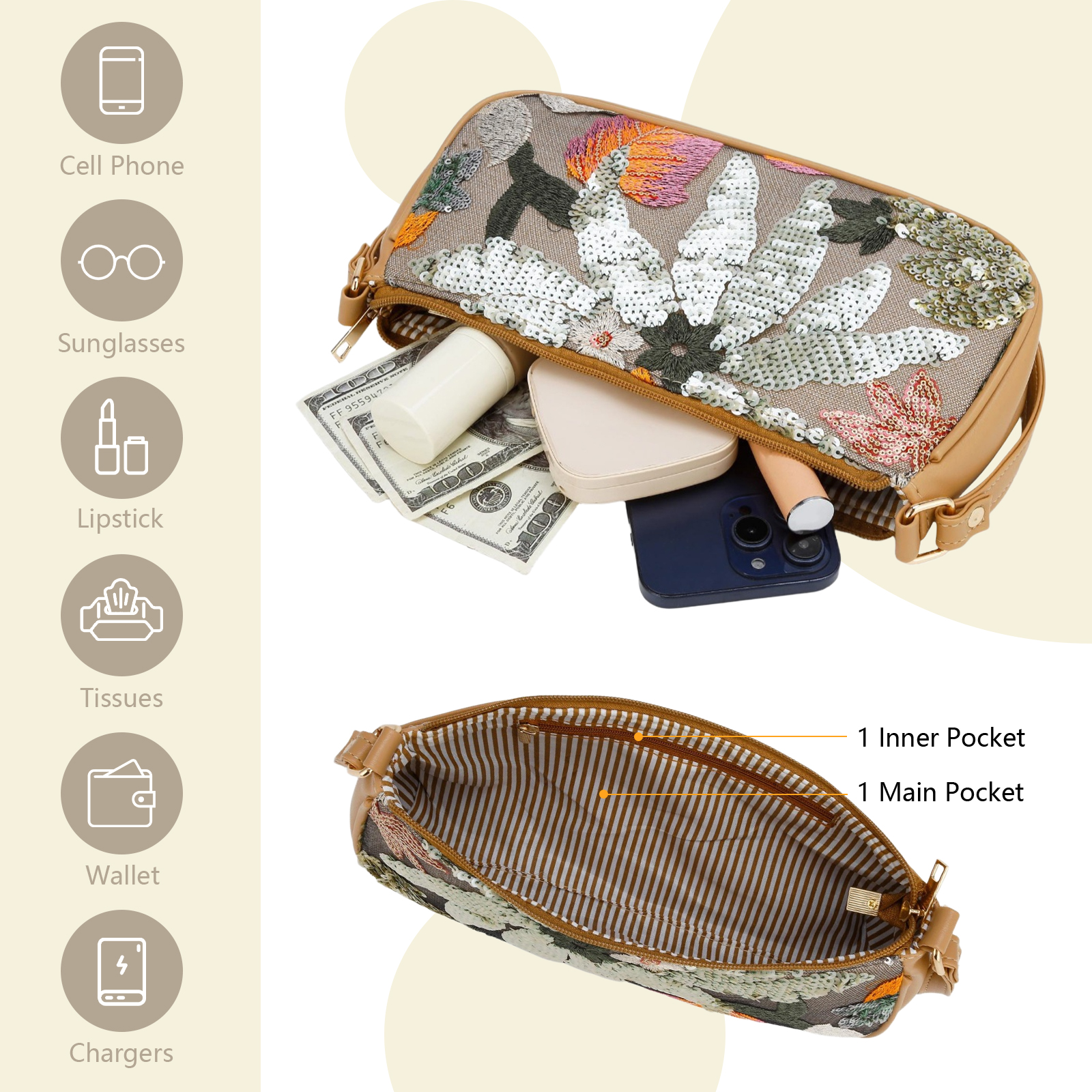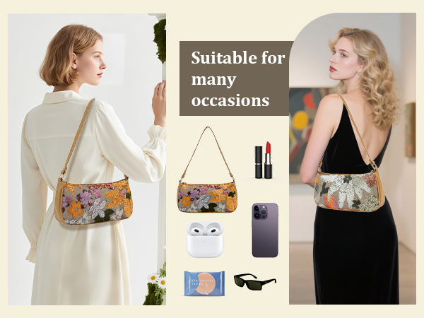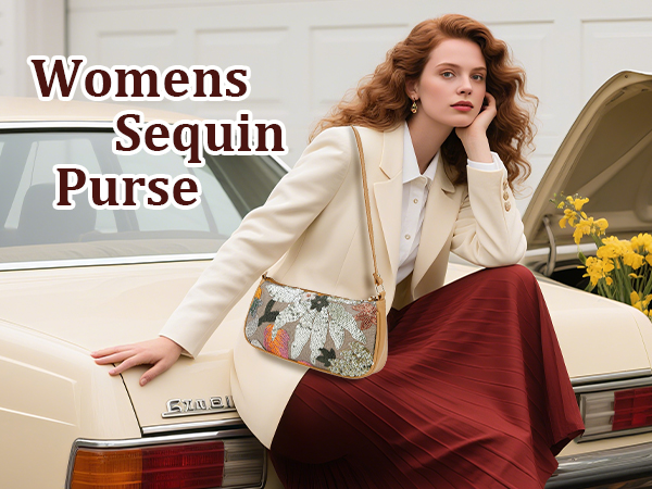 Sequin Embroidered Flower Shoulder Bag New Underarm Bag