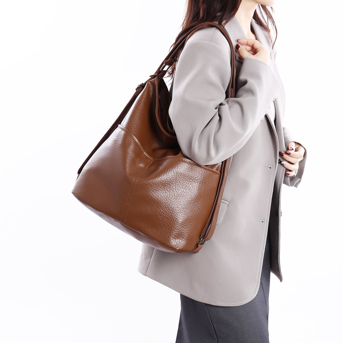 PU Leather Shoulder Bag large capacity & soft surface Polyester Solid PC