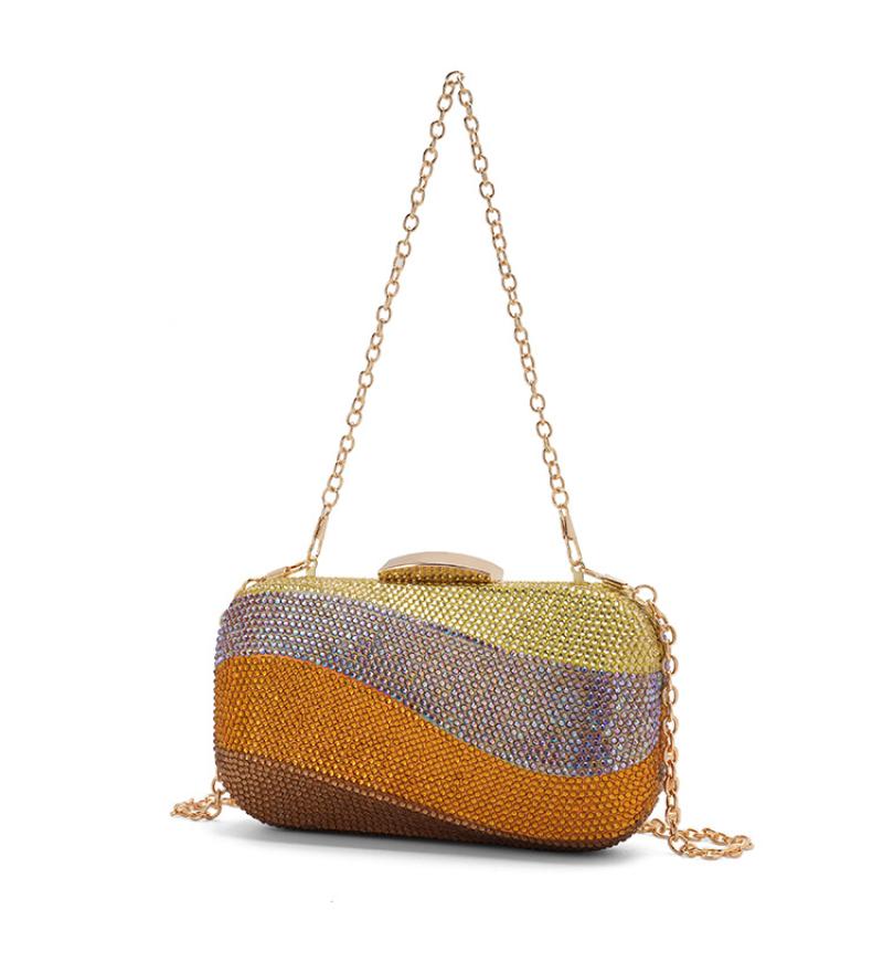 Silk hard-surface Clutch Bag, attached with hanging strap & with rhinestone, Solid, more colors for choice,  PC
