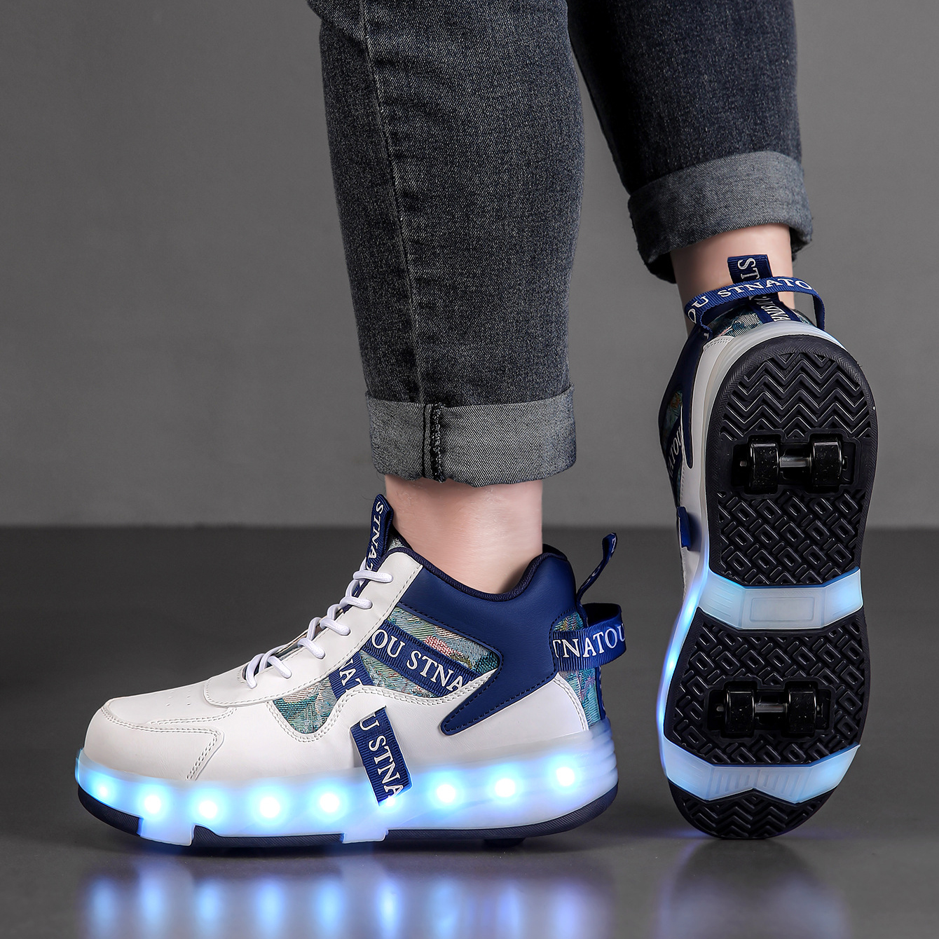 PU Rubber & Mesh Fabric & PU Leather With light Children Wheels Shoes PC