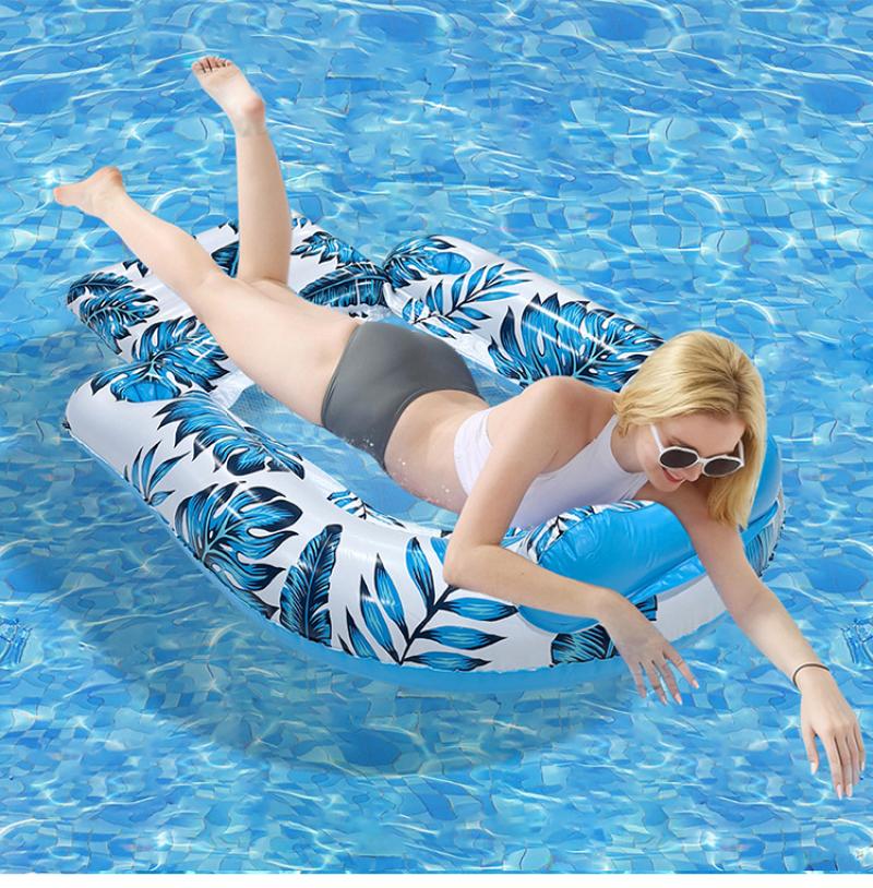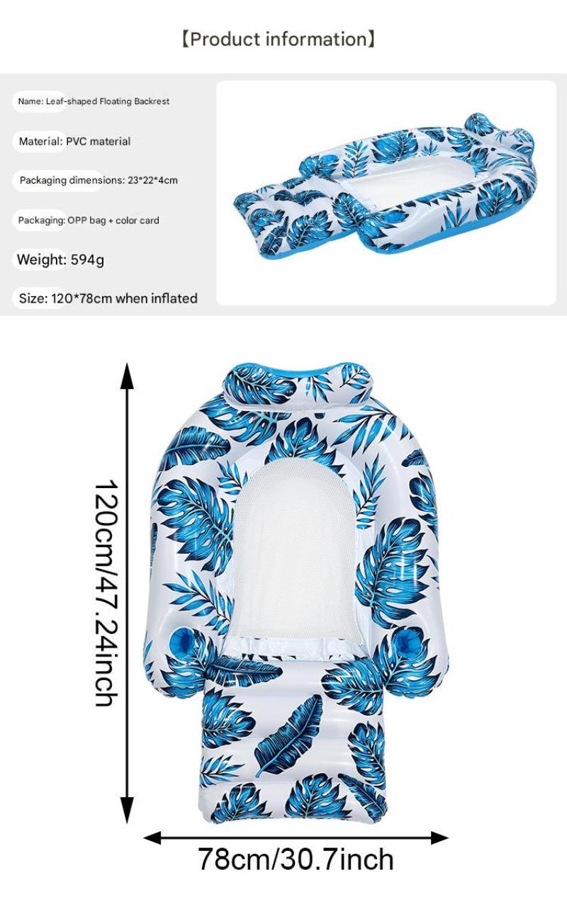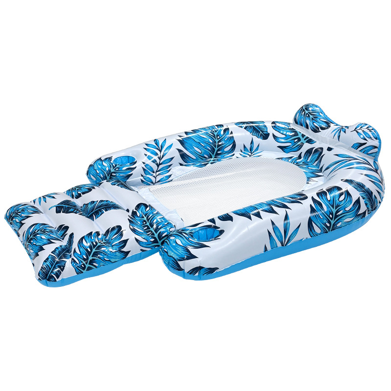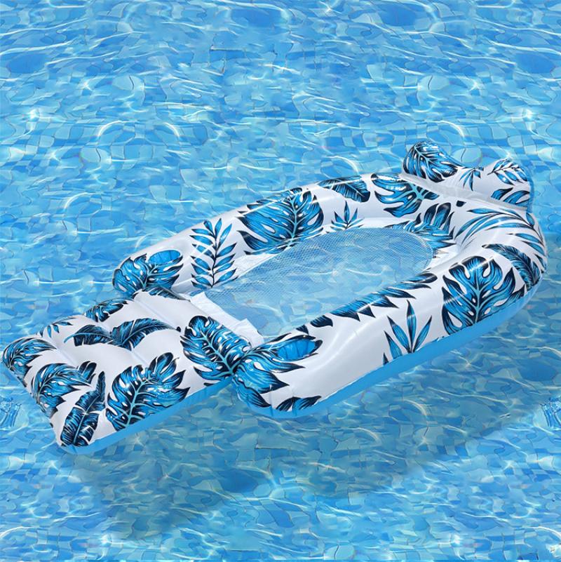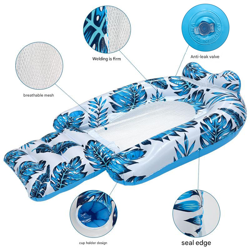 PVC Inflatable & foldable Floating Bed thickening printed leaf pattern blue PC