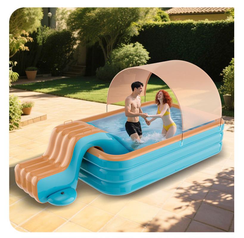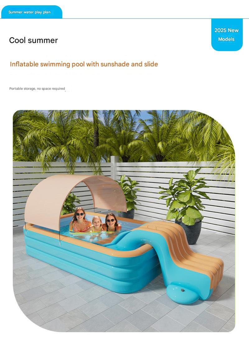 Children's inflatable slide swimming pool thickened outdoor pool with sun protection