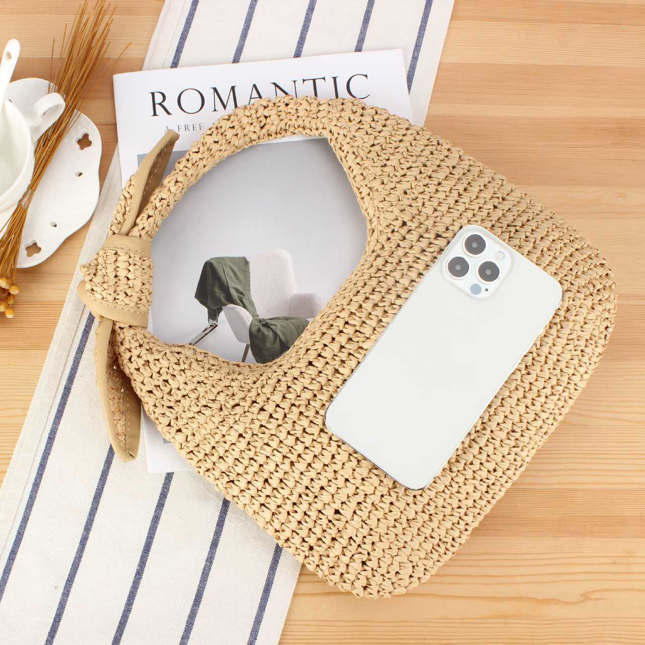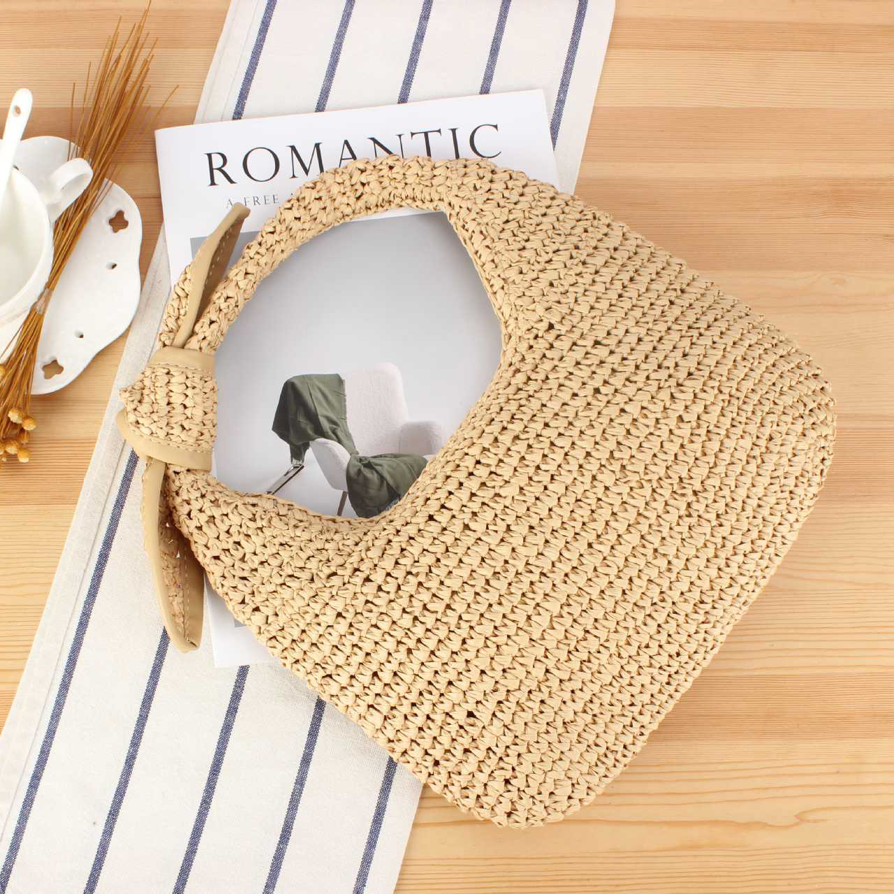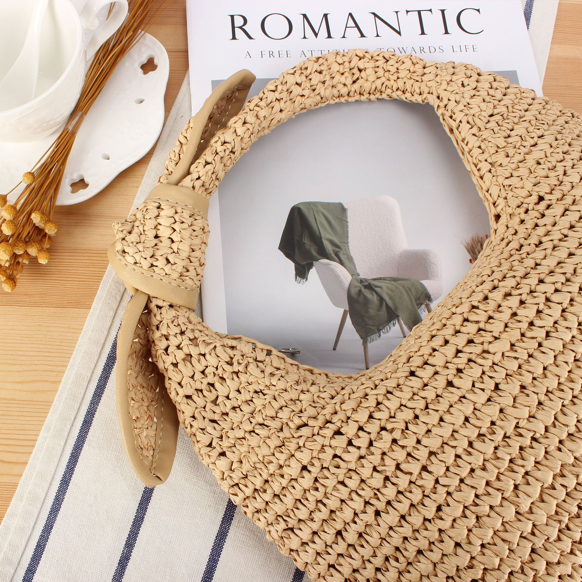 Paper Rope Handbag, soft surface & hollow,  Polyester, more colors for choice,  PC