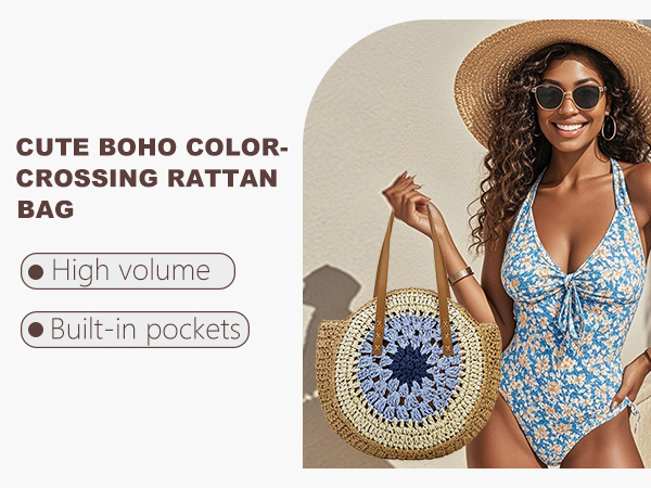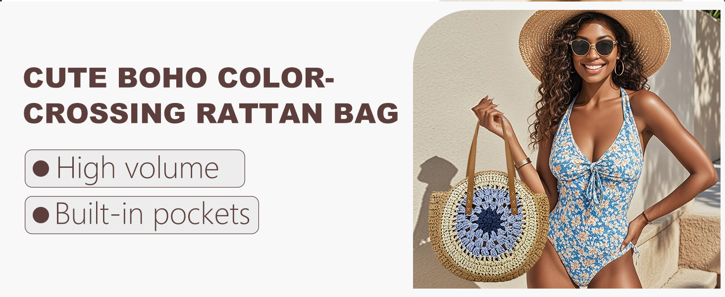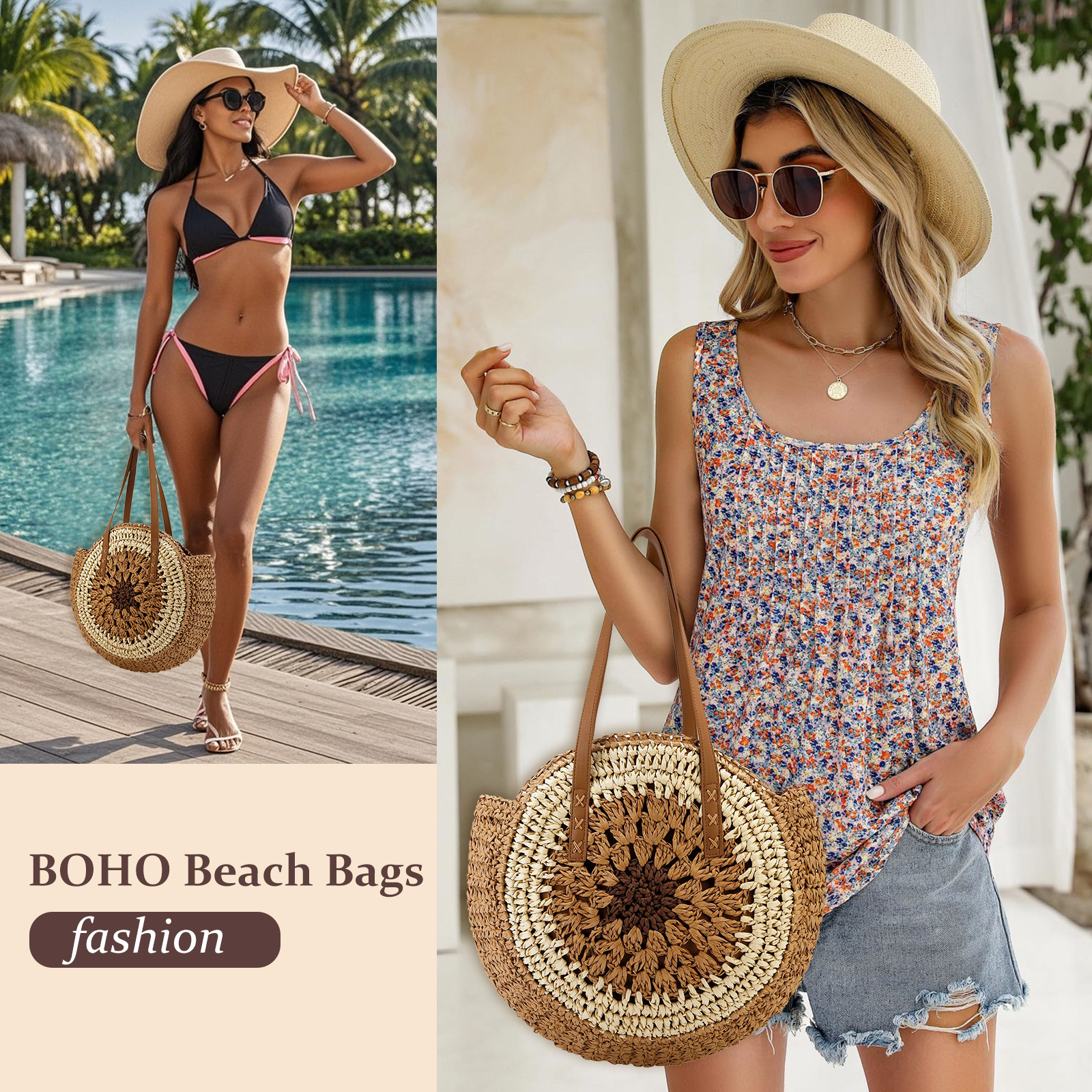 Paper Rope Beach Bag & Easy Matching Woven Shoulder Bag large capacity PC