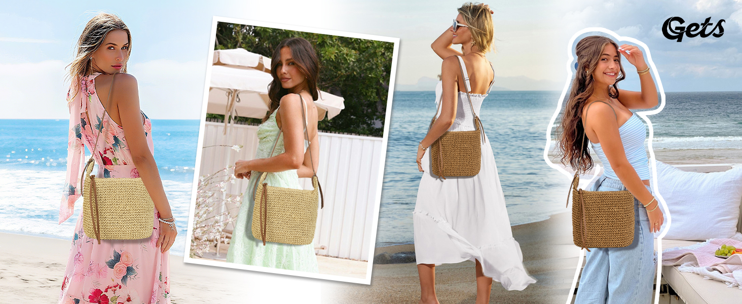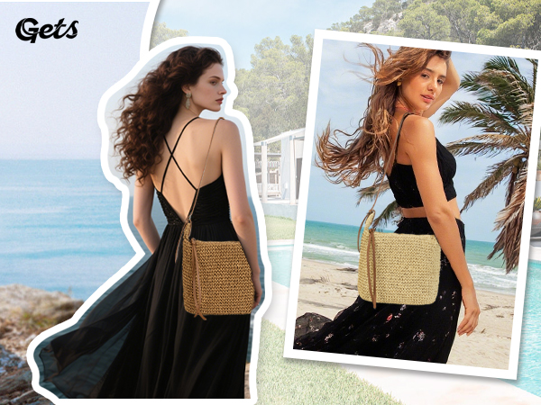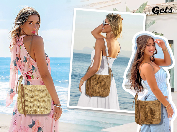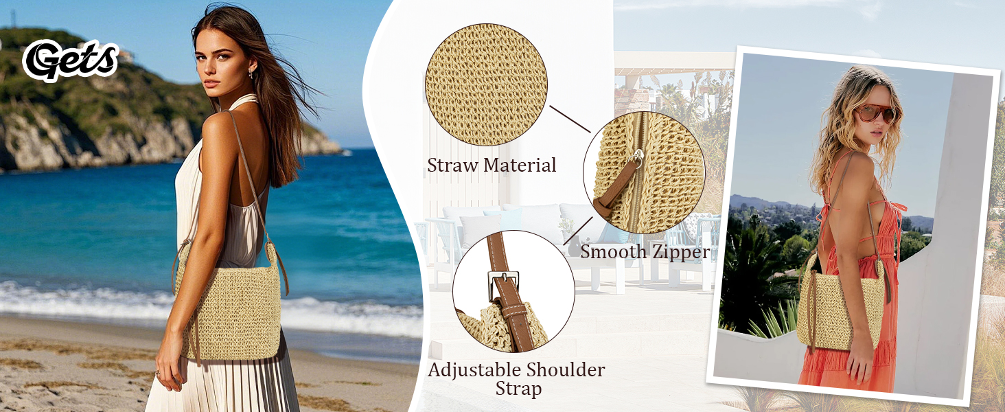 Paper Rope Easy Matching Woven Shoulder Bag large capacity PC