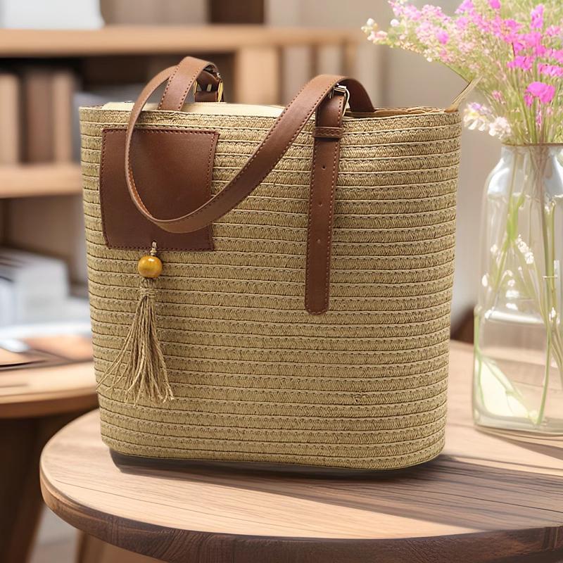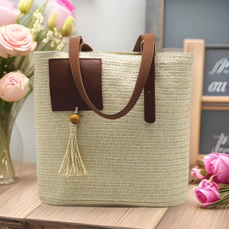 Paper & Straw Tassels Woven Shoulder Bag PC