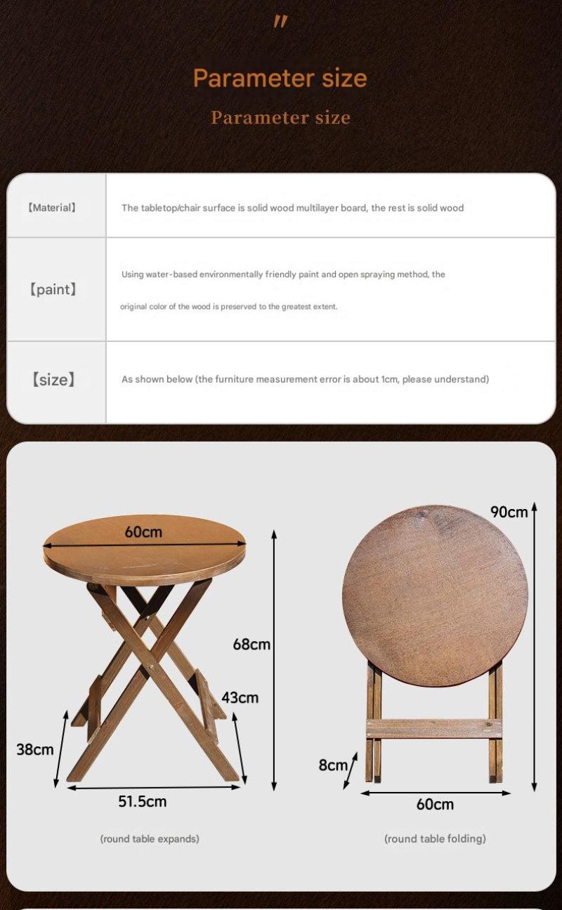 Folding round table (no installation required)Folding square table (no installation required)Folding backrest chair (no installation required)