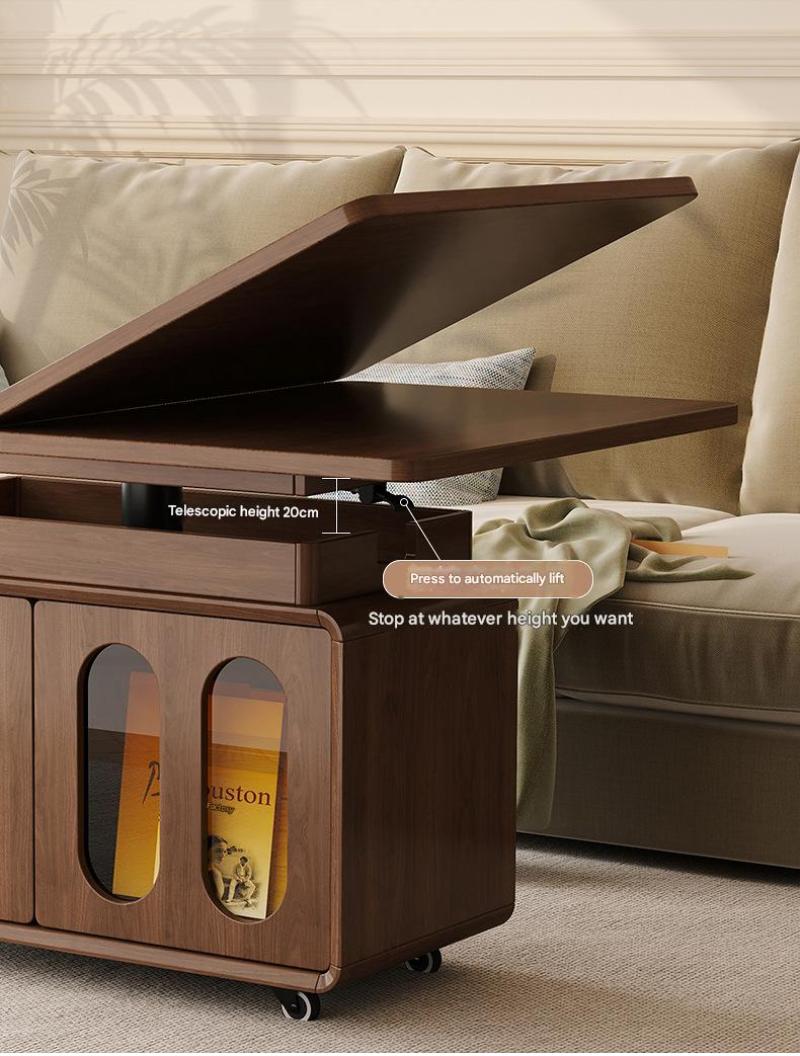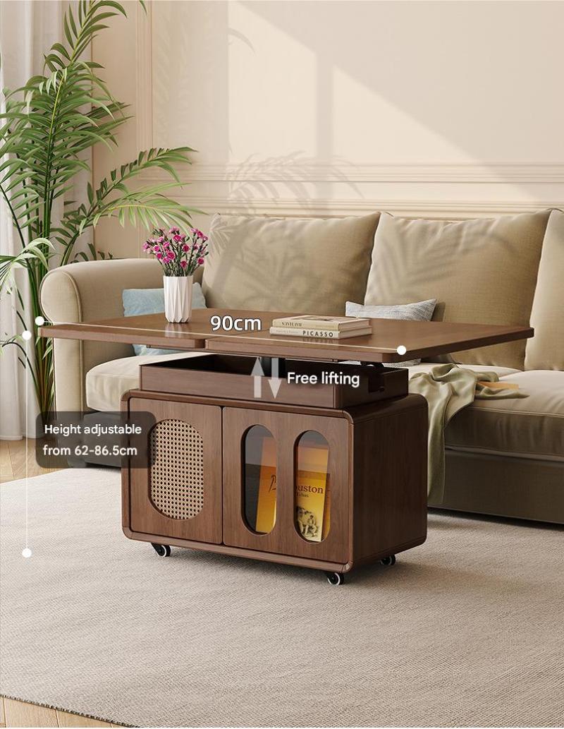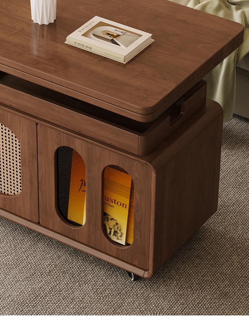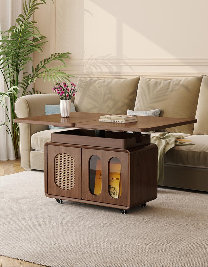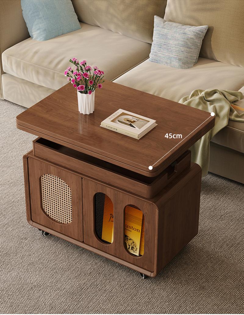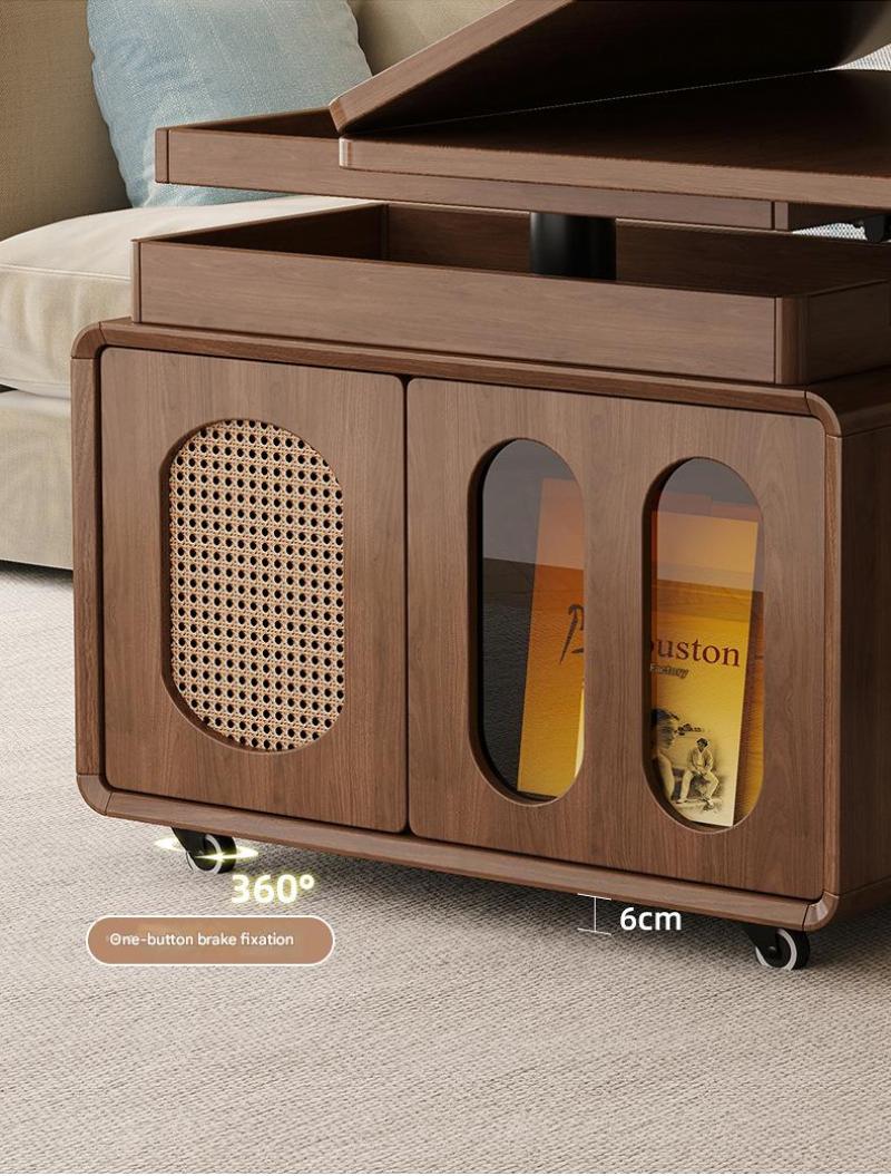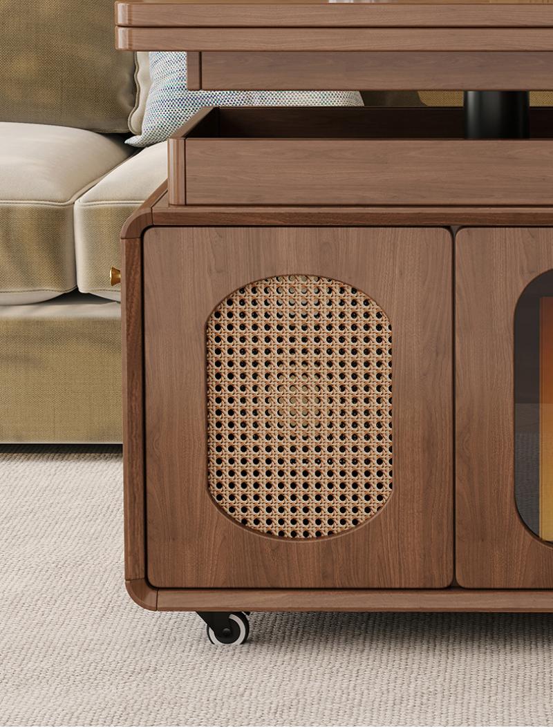 Particle Board Tea Table with caster & adjustable Rattan PC