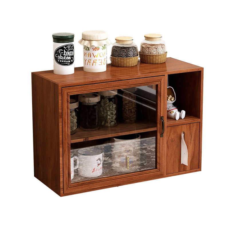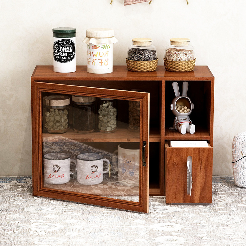 Glass vintage solid wood tea cup storage cabinet desktop storage box dustproof Display Cabinet
