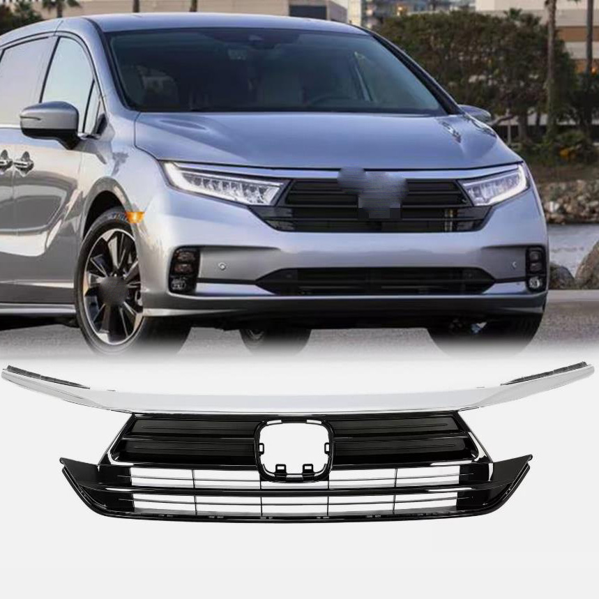 For Honda Odyssey 2021-2023 Front Upper ABS Black Grille Grill Chrome Molding