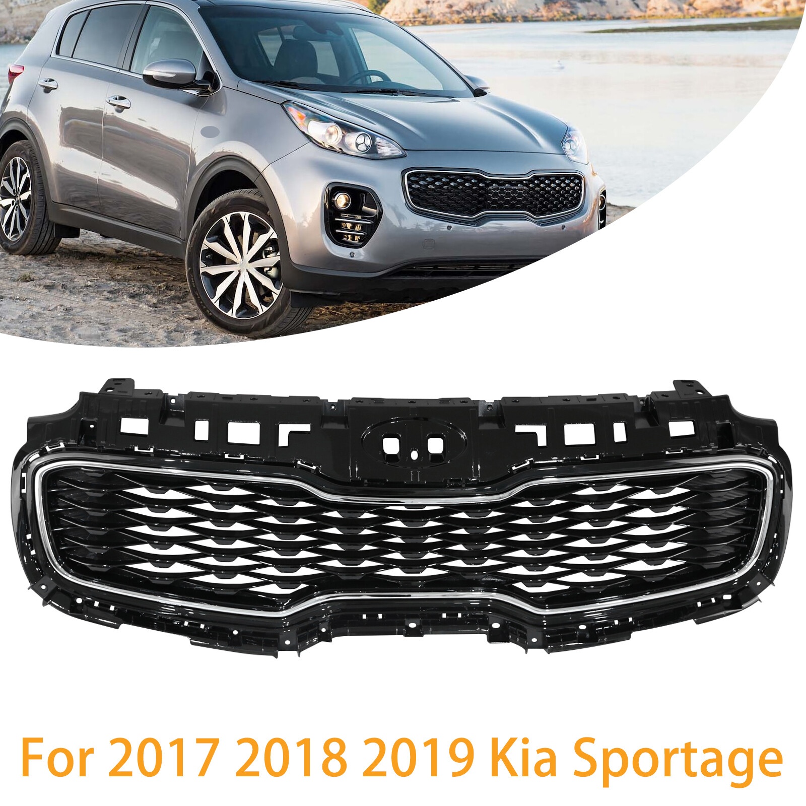 Front Bumper Upper Grille Grill W/ Chrome Trim For 2017 2018 2019 Kia Sportage