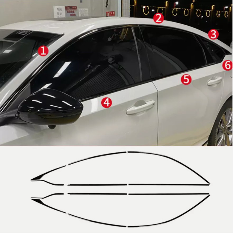 Glossy Black Steel Window Frame Strip Trim Accessories For 2018-22 Honda Accord