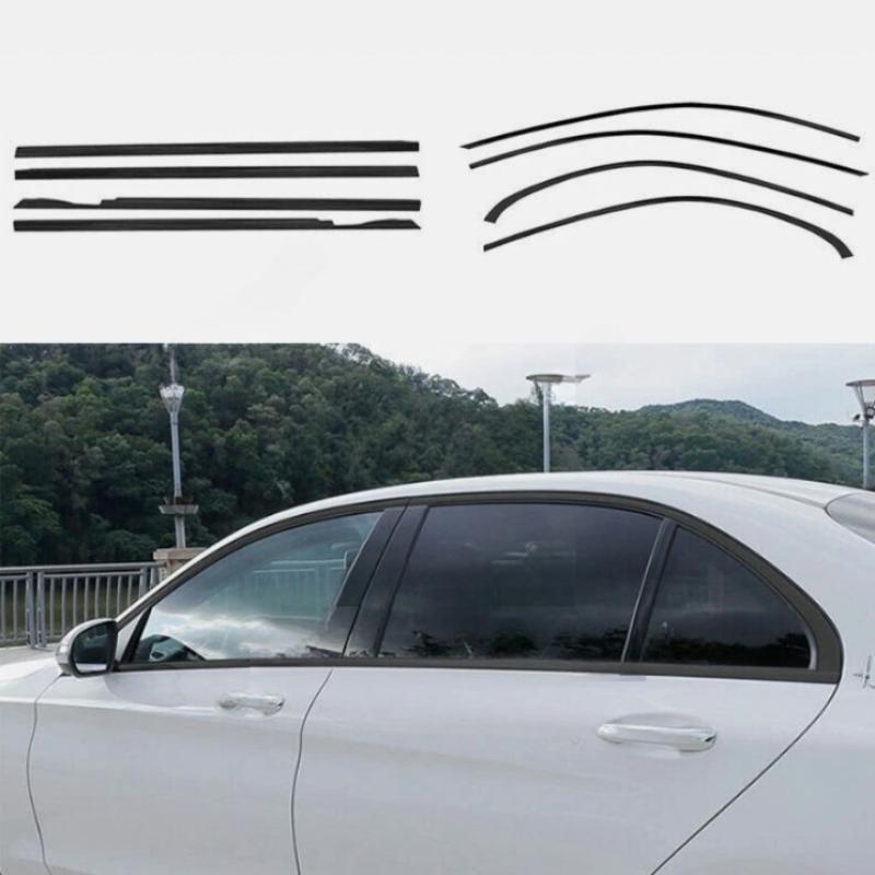 For Benz C-Class 15-21 Glossy Black Steel Windows Strip Sill Molding Cover Trim