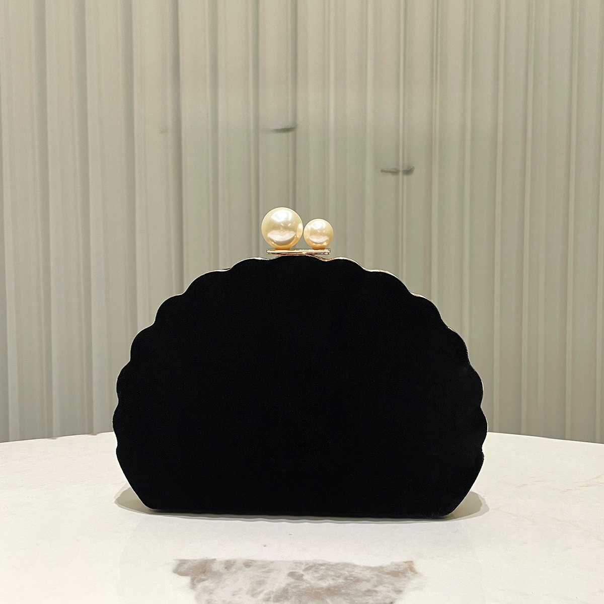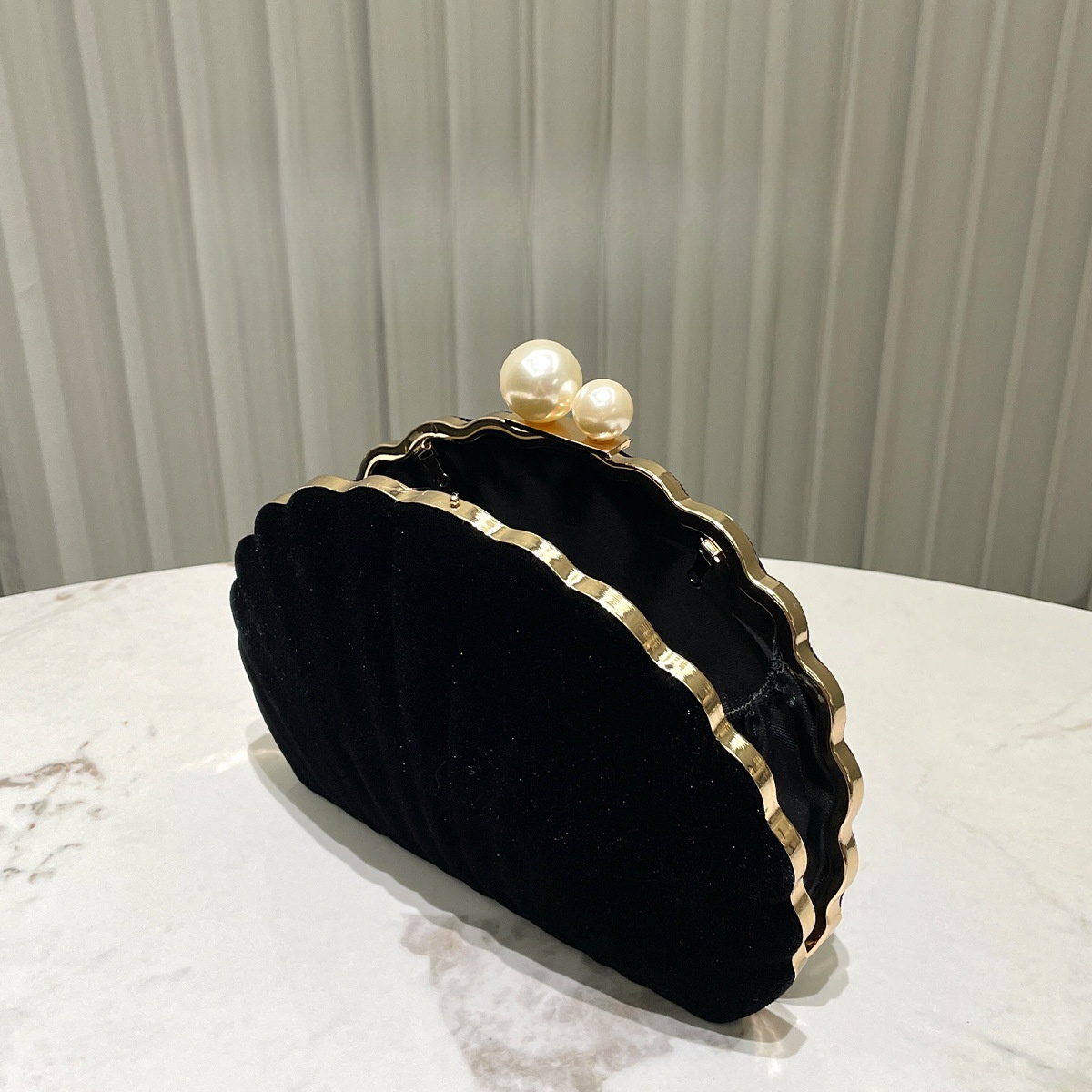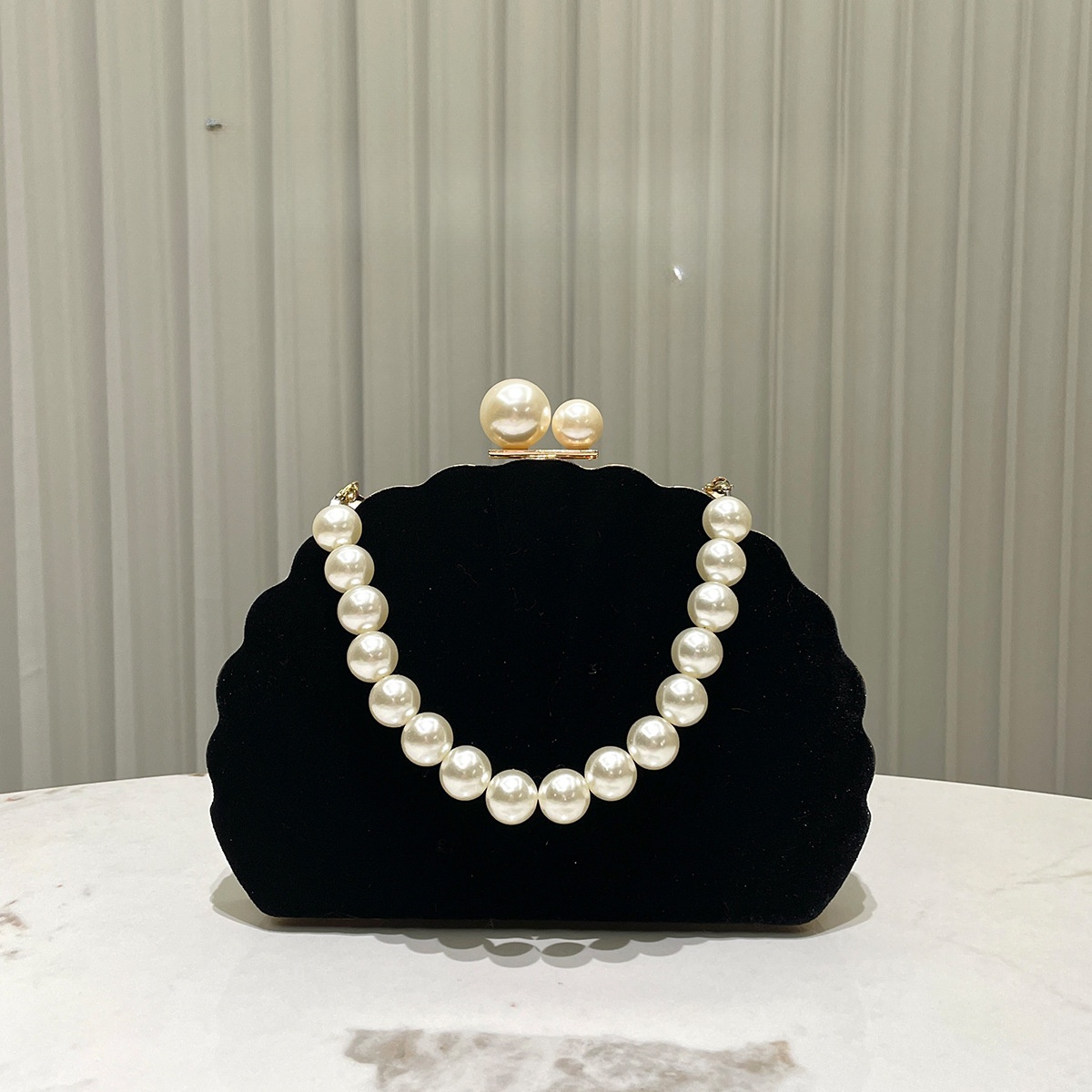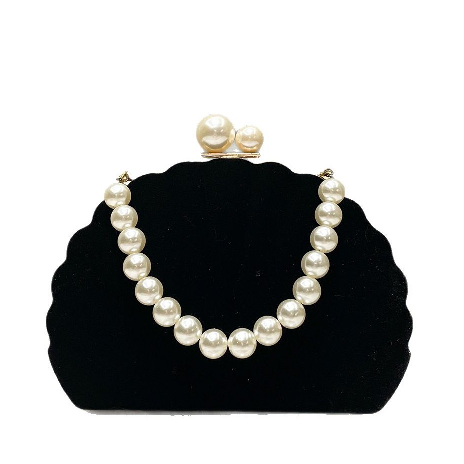Plastic Pearl & Polyester Clutch Bag with chain black PC