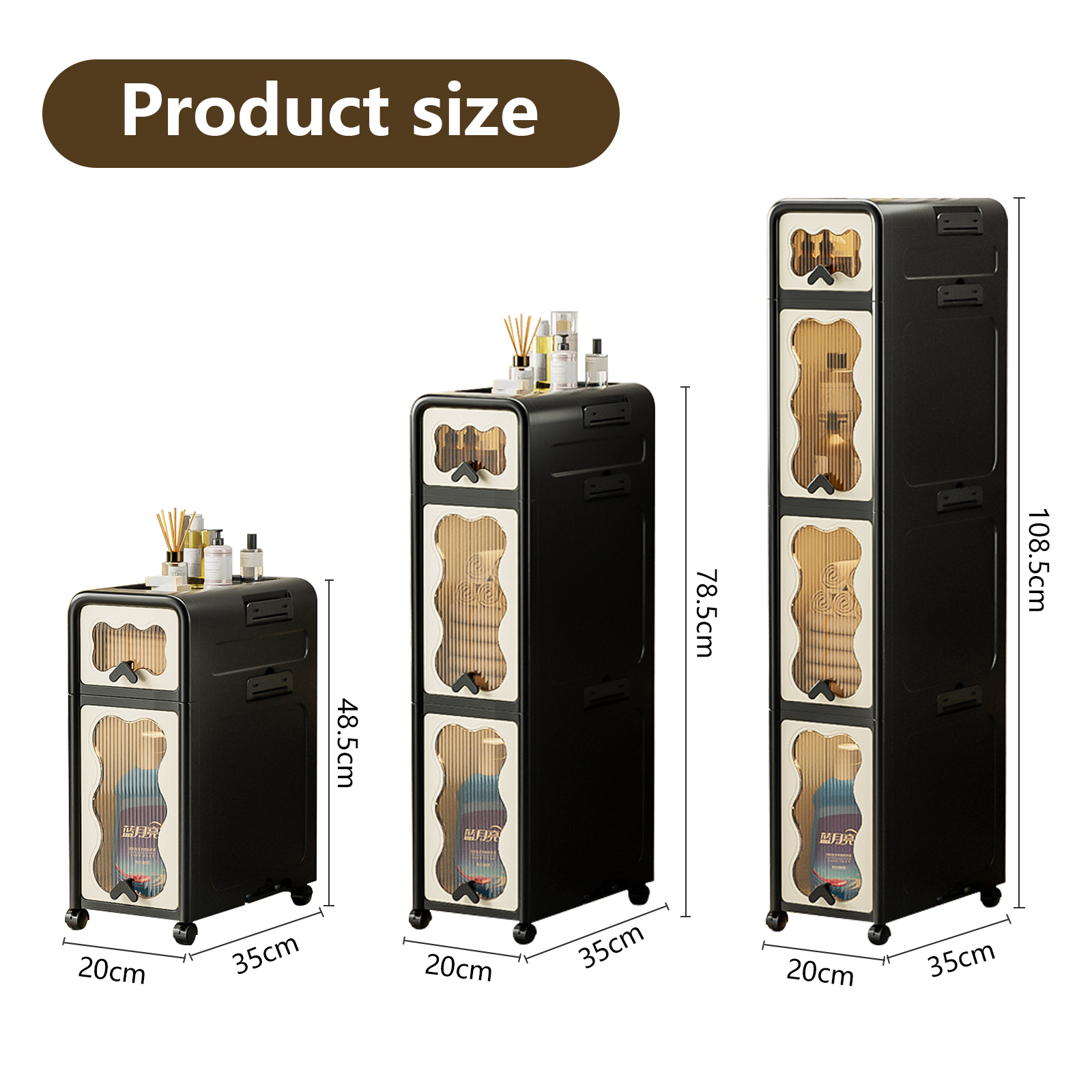One short and one tall. - CreamOne short and one tall. - BlackOne short and two tall. - CreamOne short and two tall. - BlackOne short and three tall. - CreamOne short and three tall. - Black