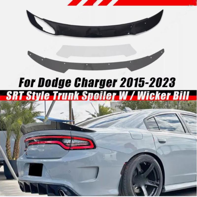 3PCS SRT Style Trunk Spoiler W / Wicker Bill For Dodge Charger ScatPack 15-23