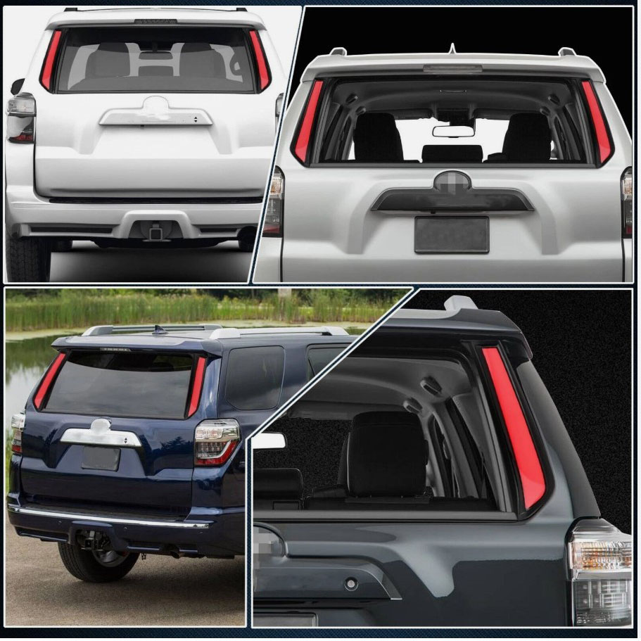 Brake Light+Running Light+Turn Signal Function, Plug and Play Sequential LED Reflector Lights, ABS Plastic and High Quality LED, Lower Power Consumption, Save Whole of Energy, Square Dot Type LED Design, Floating Sequential Run-Through Effect, Full LED Taillight Brake Light Kit, Rear Windshield Side Reflectors To LED, Compatible With 2010-2023 Toyota 4Runner, Rear Windshield Outside Liftgate Molding, Smoked Lens Full LED Vertical Fit Tail/Brake Light Bar Kit
