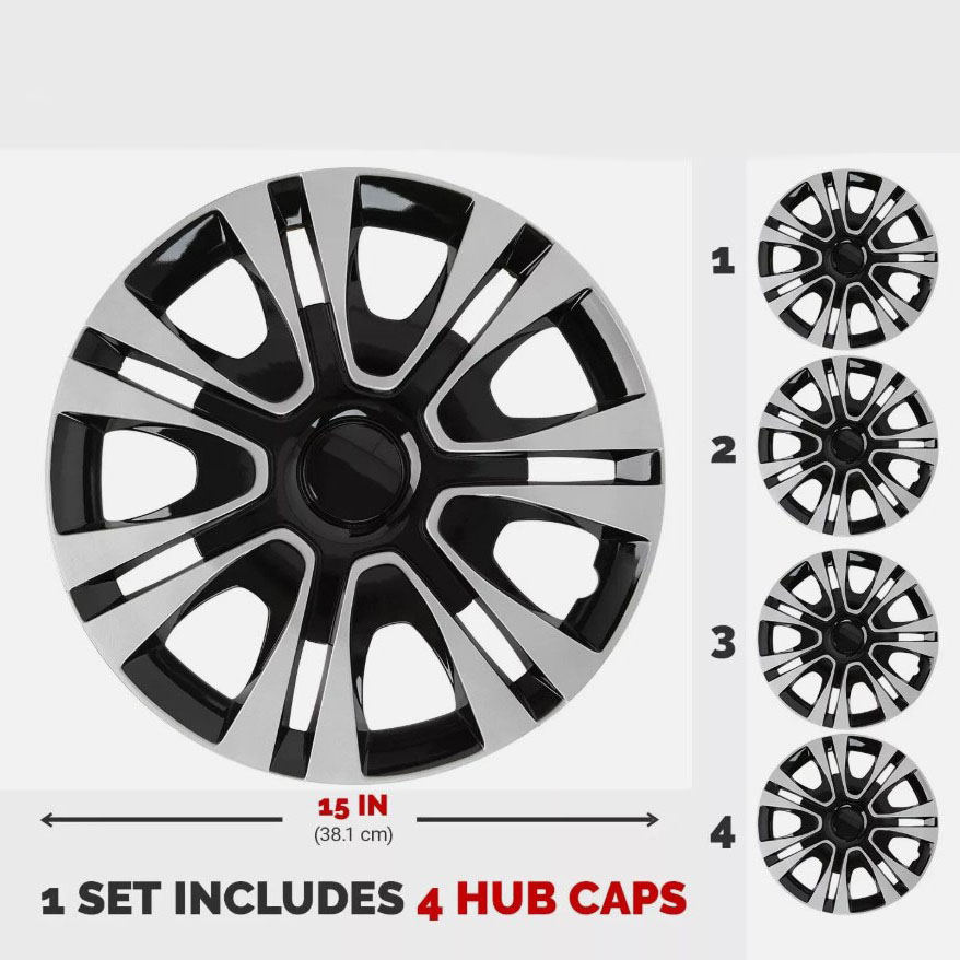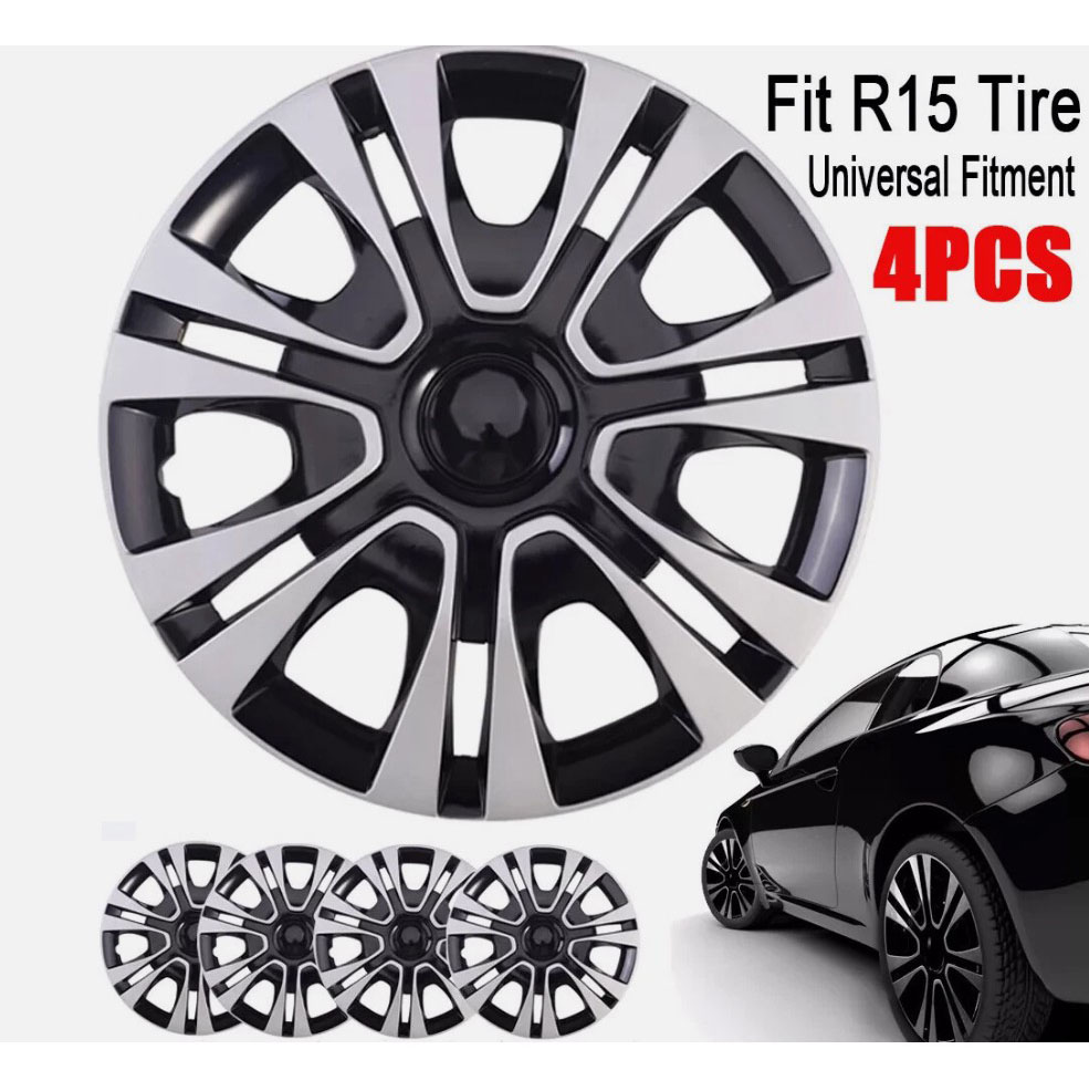 4X 15 inch Wheel Cover Snap On Full Hub Caps Fit for R15 Tire & Steel Rim Sliver