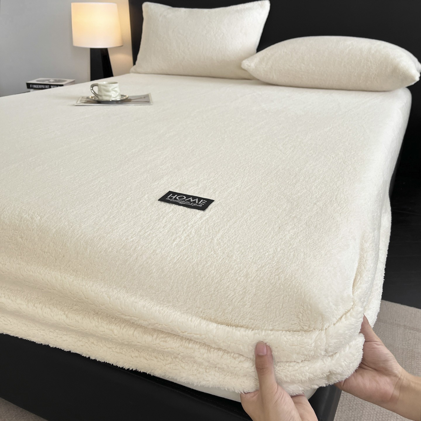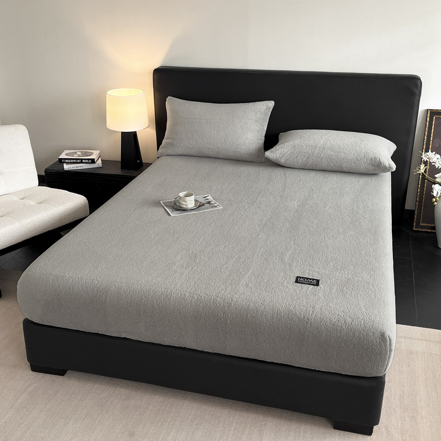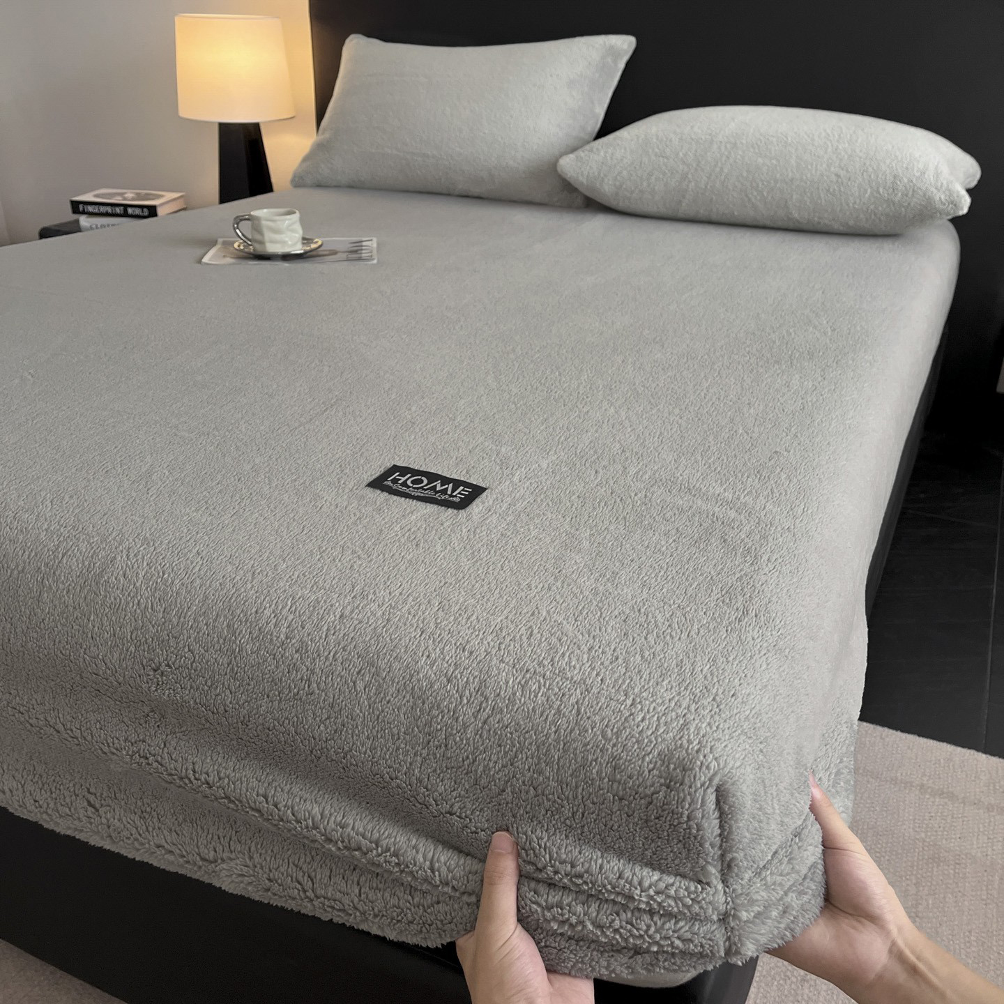 Plush Bed Fitted Sheet thicken & thermal Solid PC