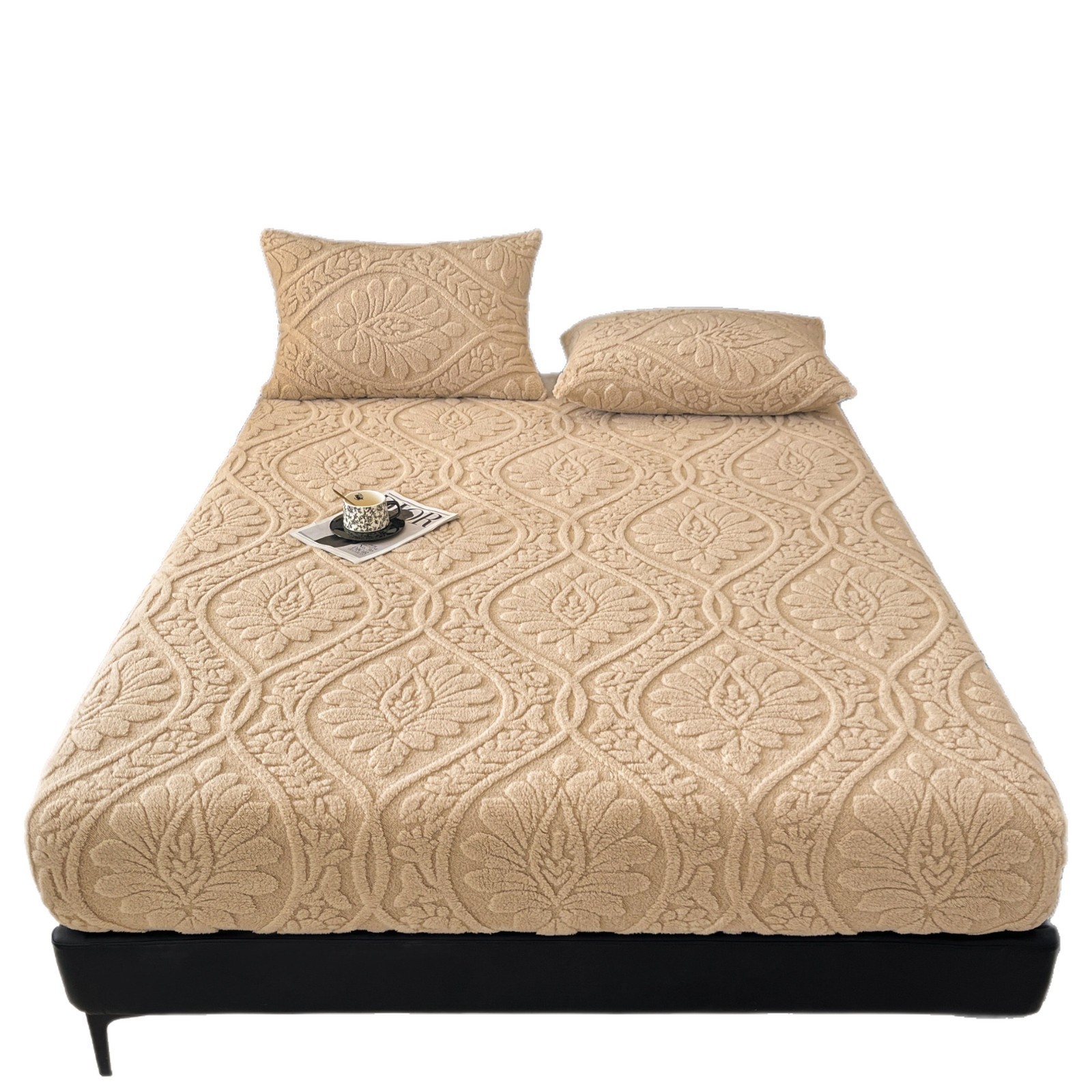 Plush Bed Fitted Sheet thicken & thermal Solid PC