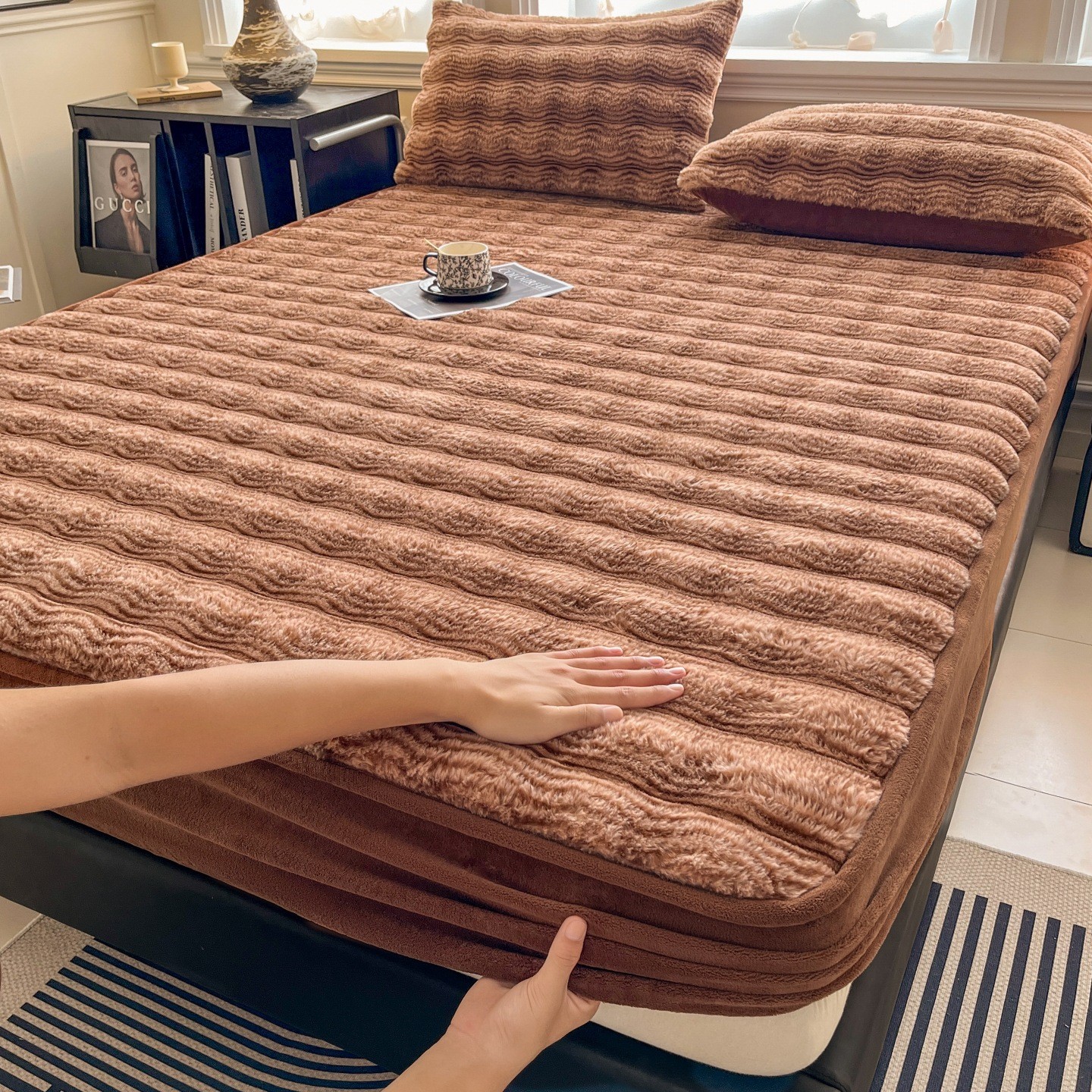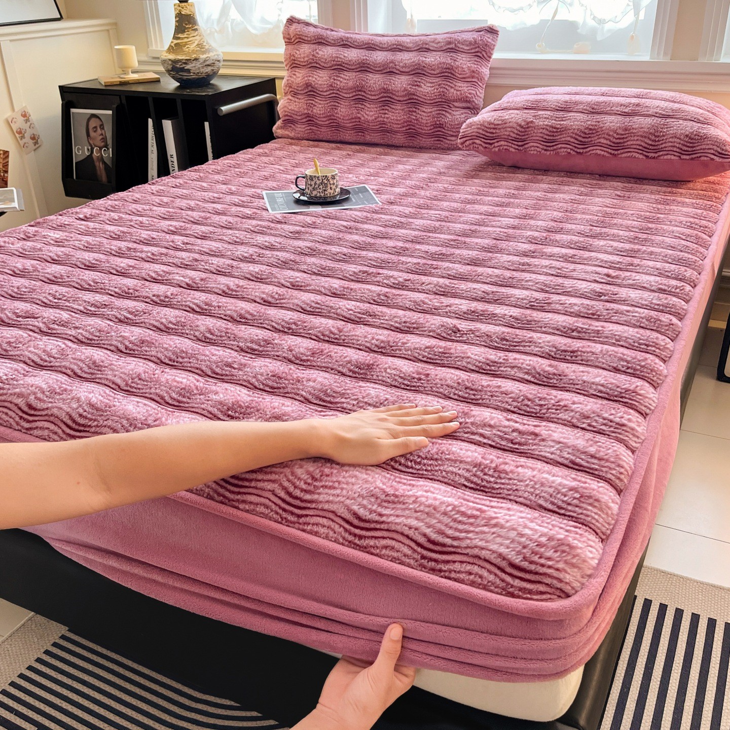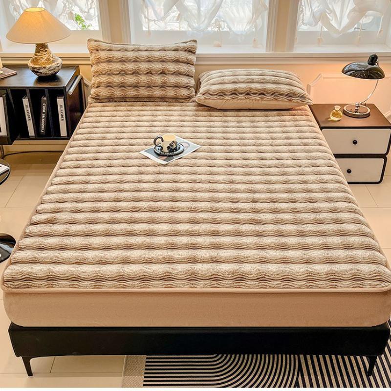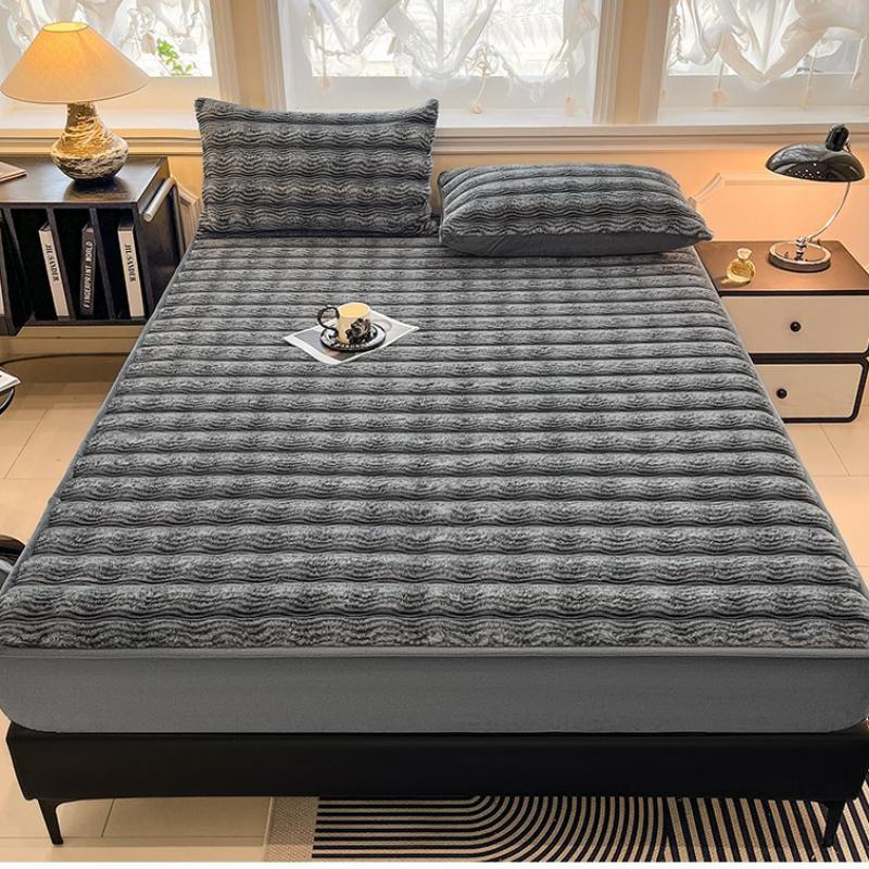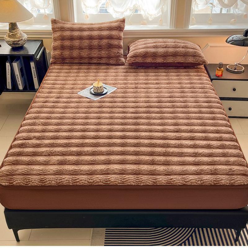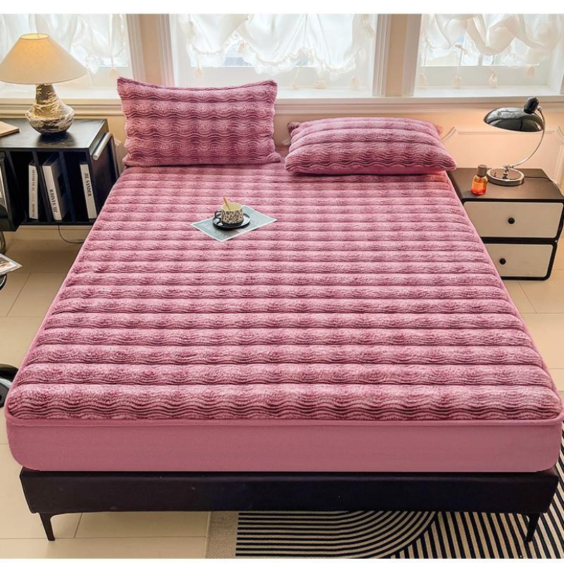 Plush Bed Fitted Sheet thicken & thermal Solid PC
