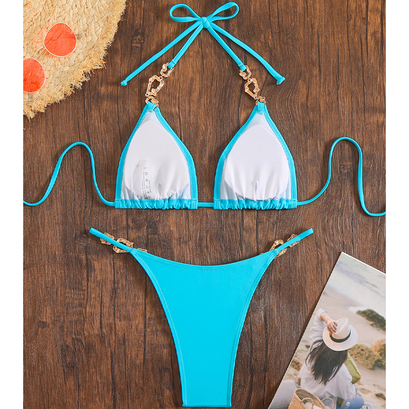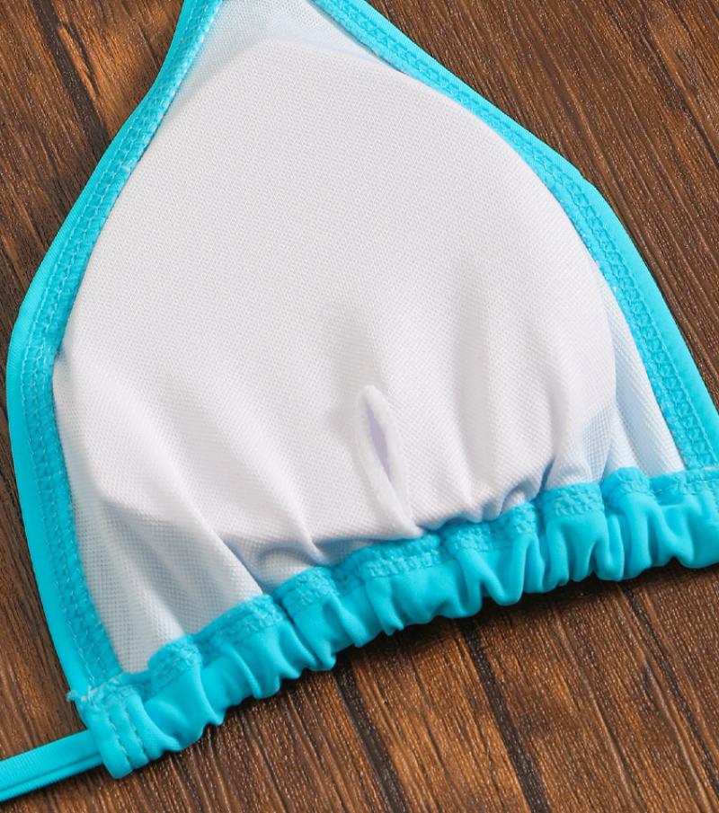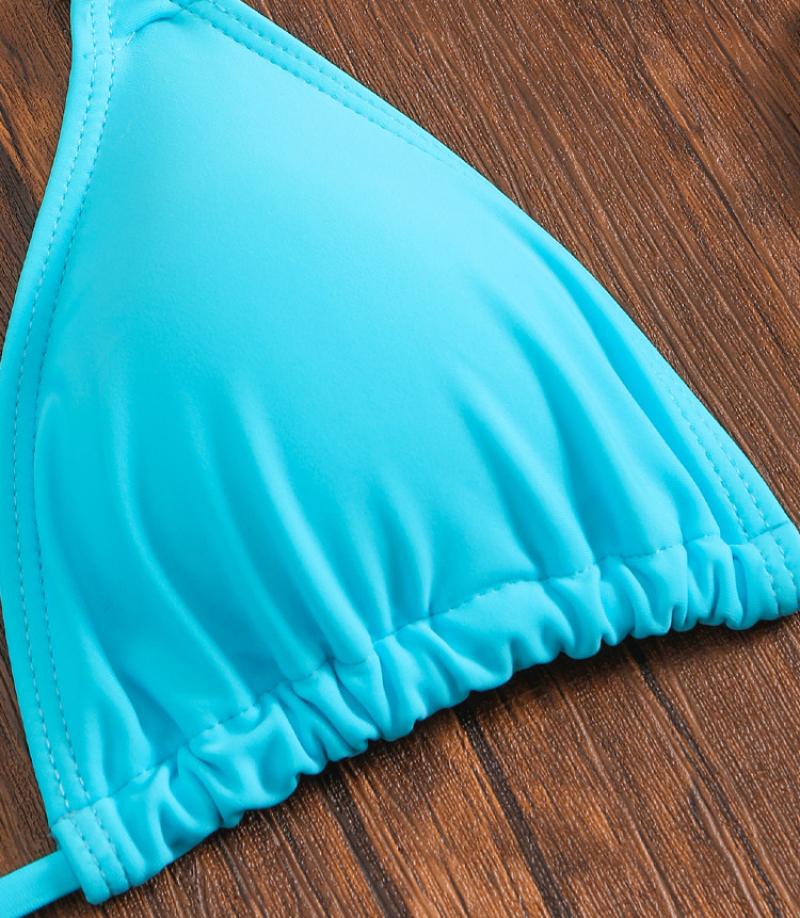 Polyamide & Polyester Bikini & two piece & padded plain dyed Solid blue Set