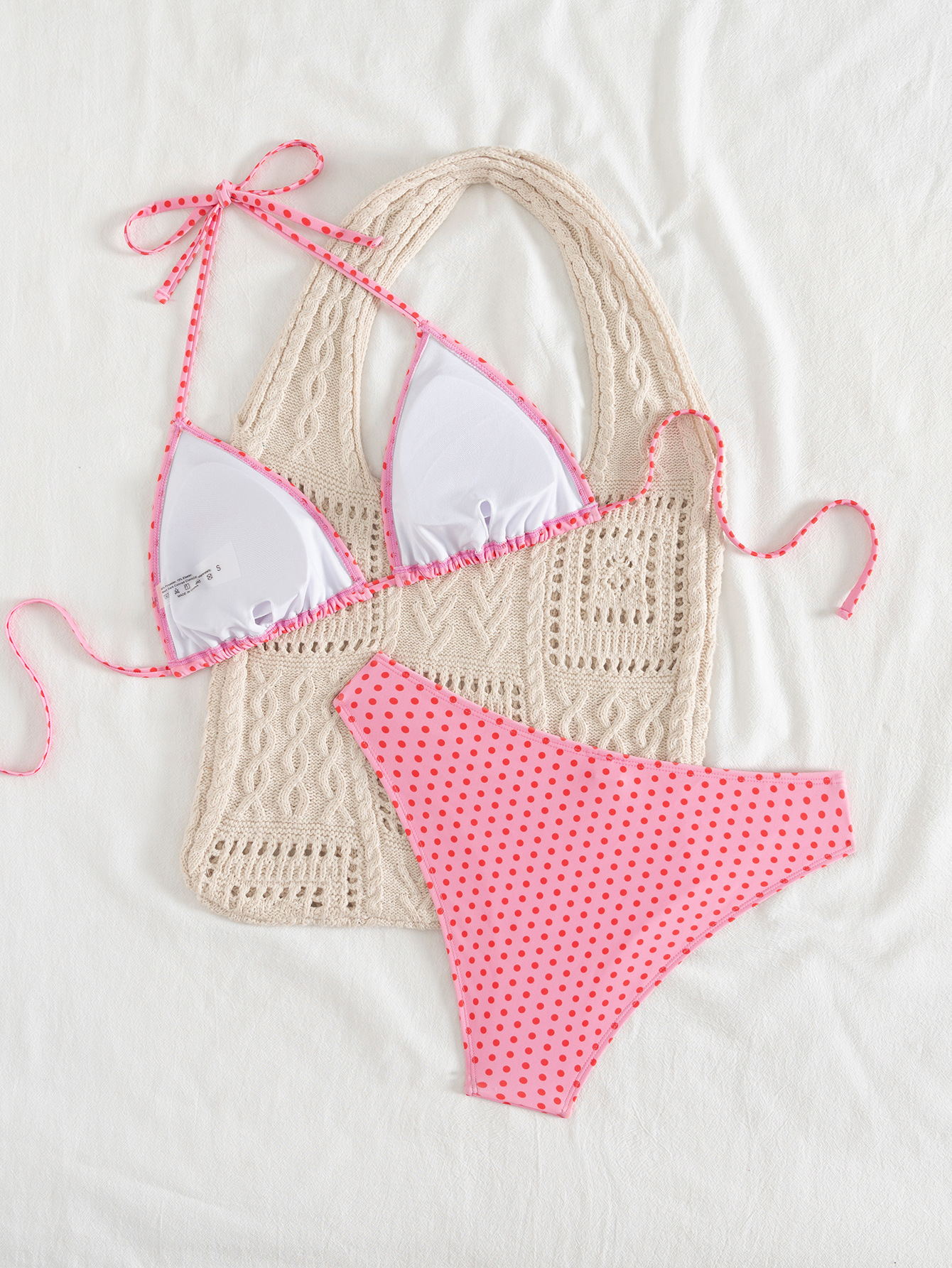 Polyamide & Polyester Bikini & padded printed dot pink Set