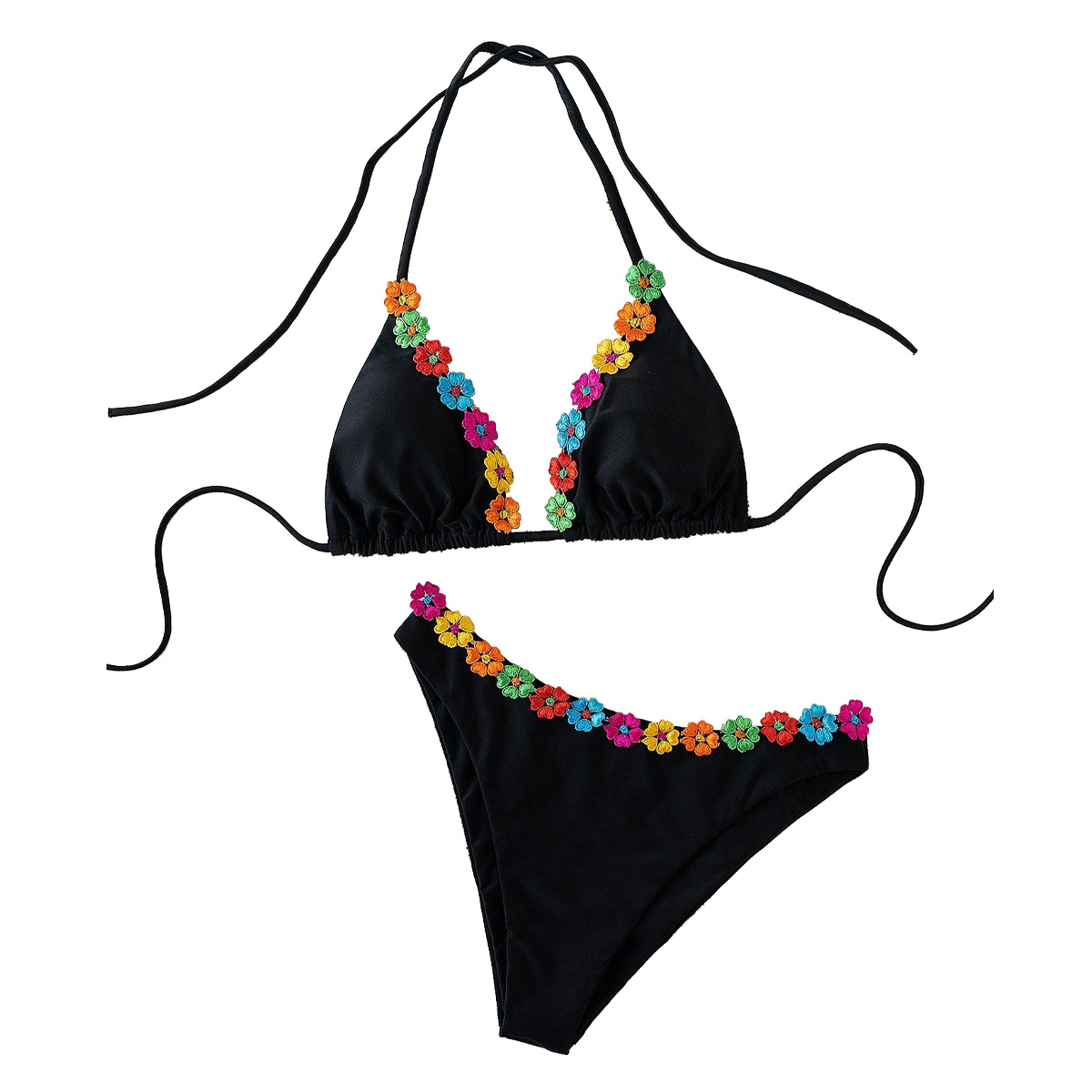 Polyamide & Polyester Bikini backless & two piece black Set