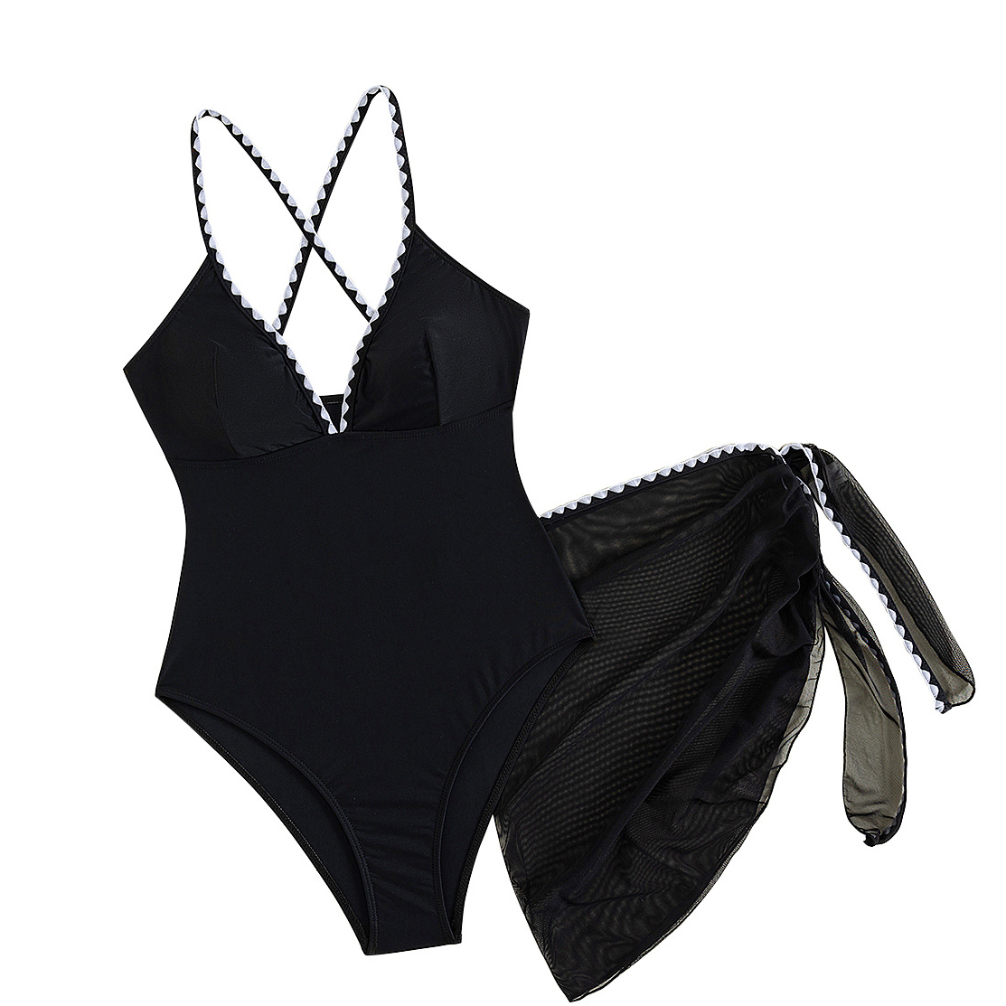 Polyamide & Polyester One-piece Swimsuit & two piece plain dyed Solid black Set