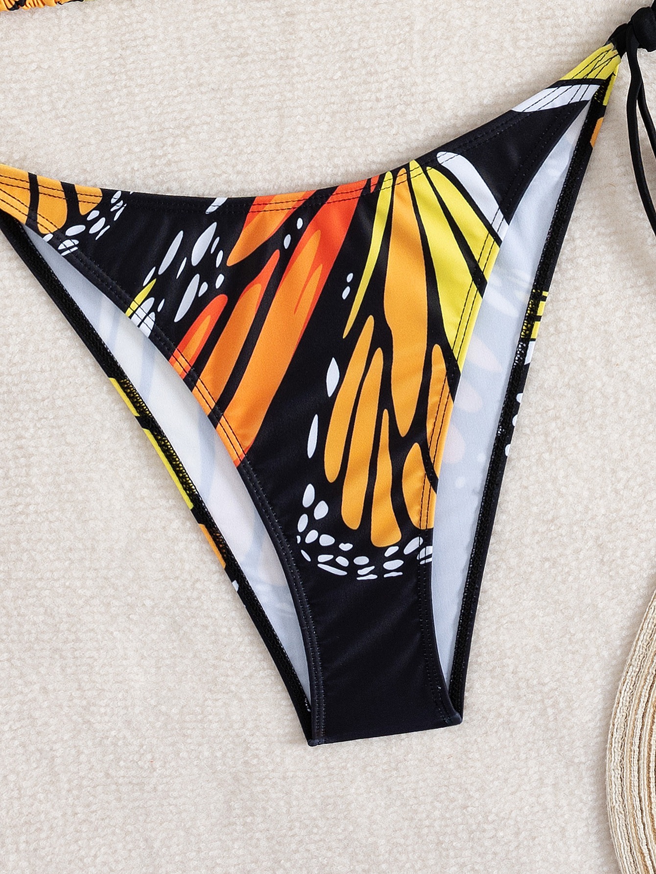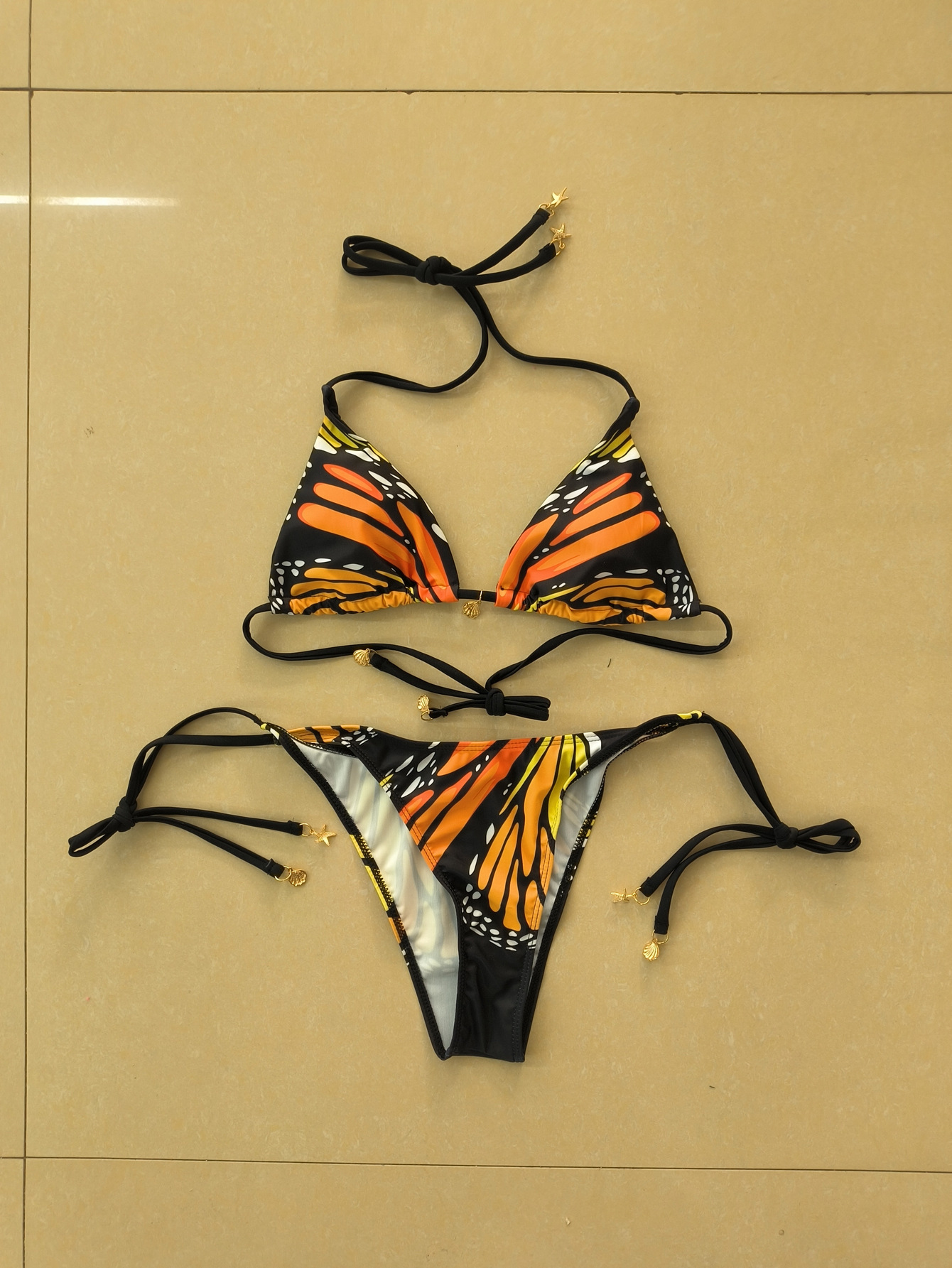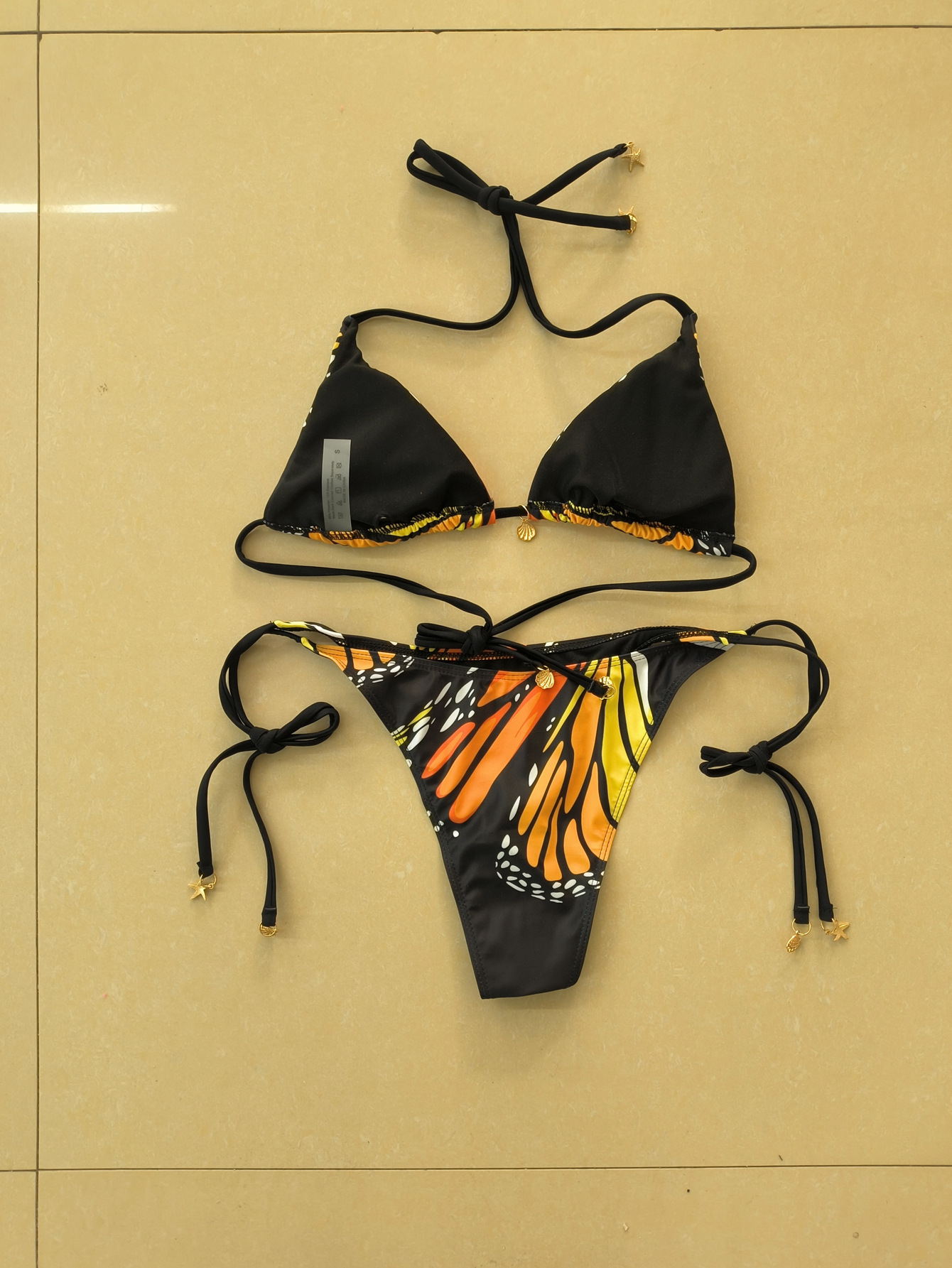 Polyester Bikini backless & two piece butterfly pattern black Set