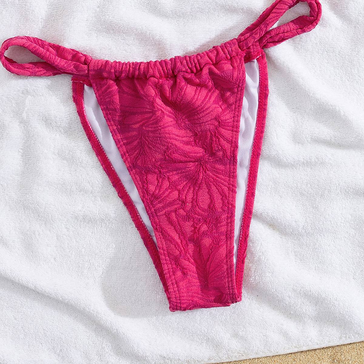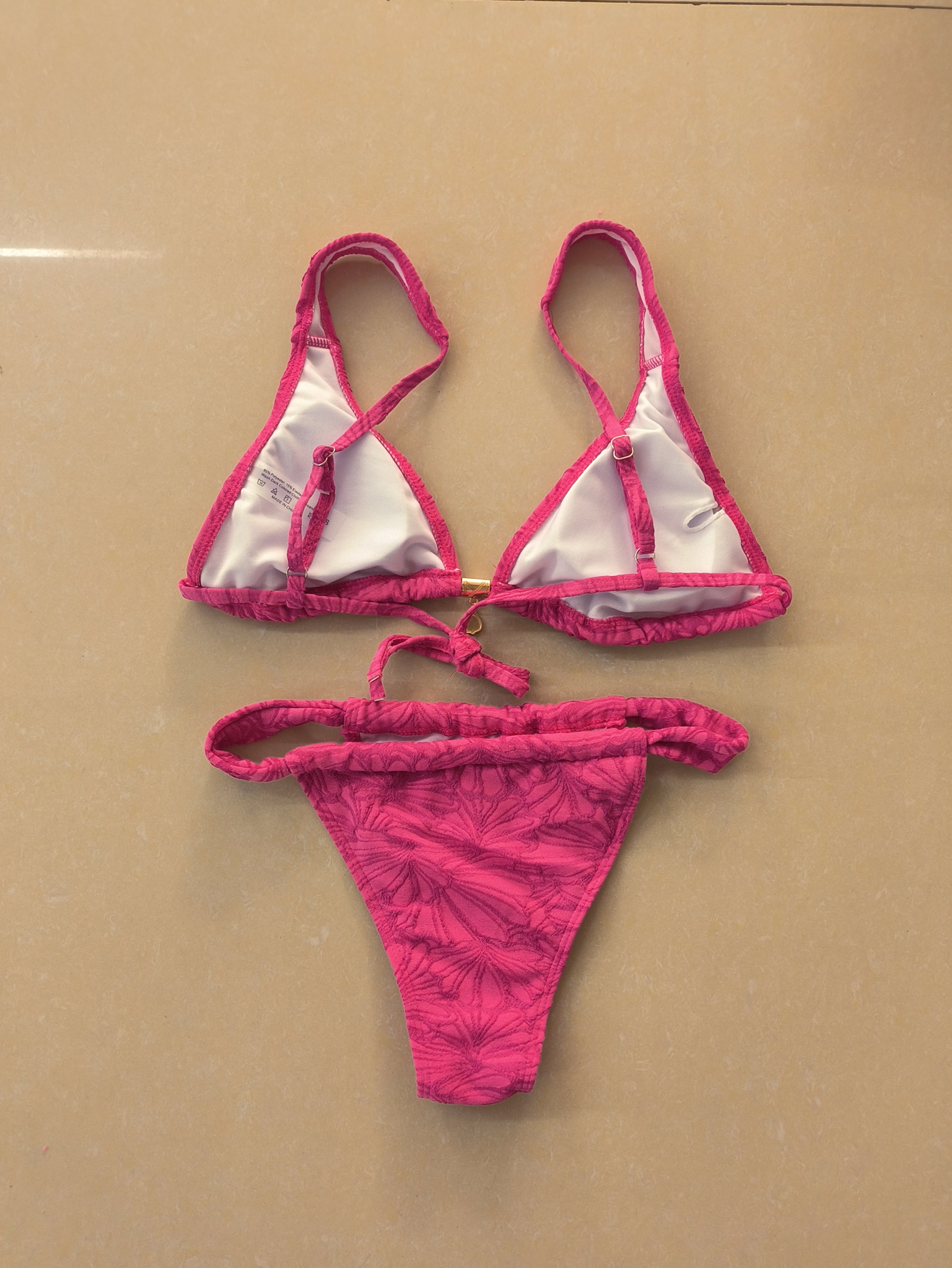 Polyester Bikini backless & two piece plain dyed fuchsia Set