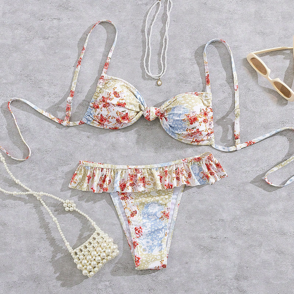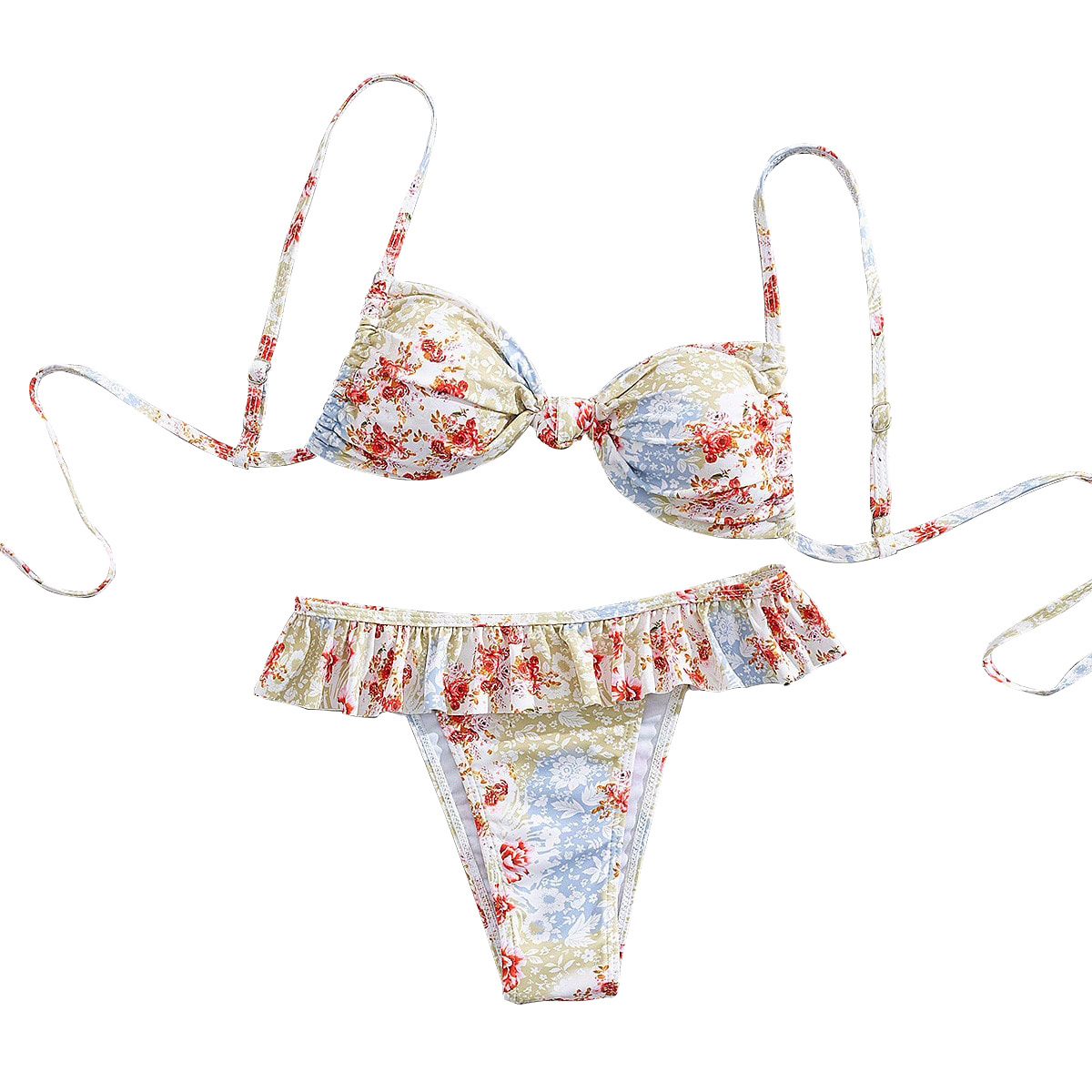Polyester scallop Bikini & two piece & padded printed floral multi-colored Set