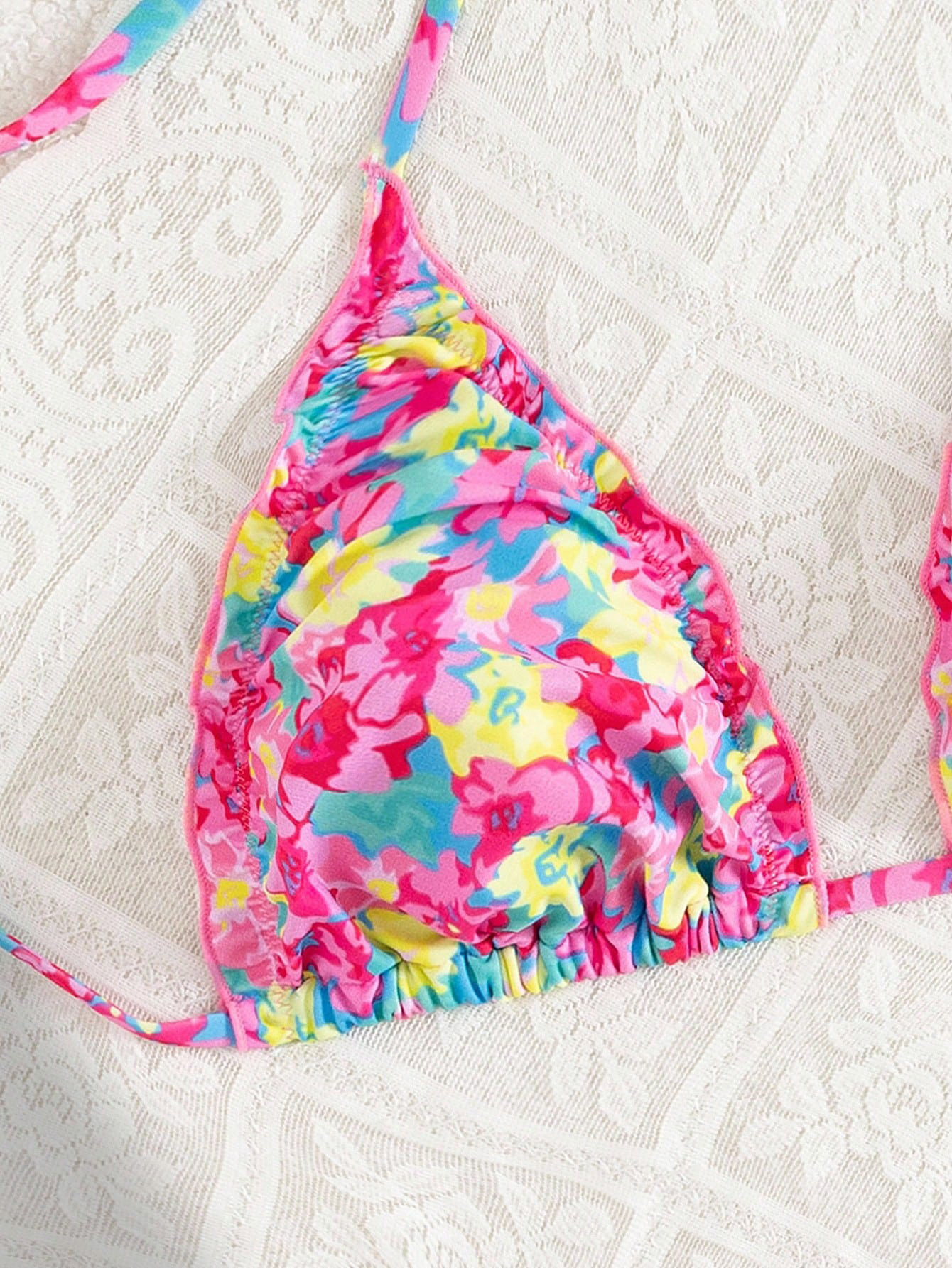 Polyester Bikini backless & padded printed floral red Set