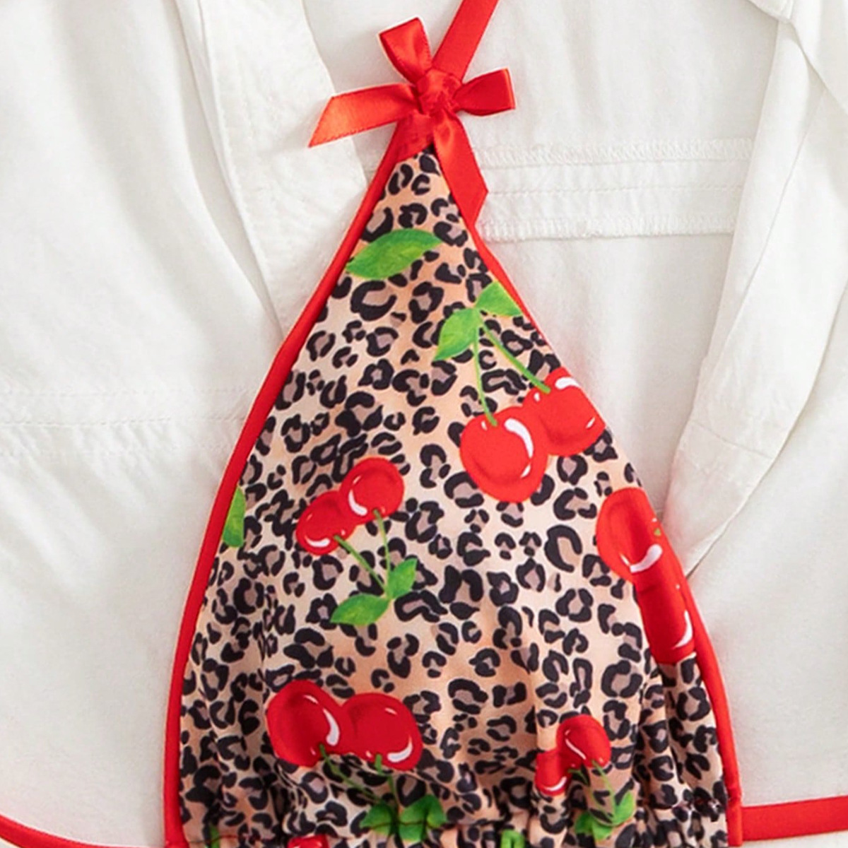 Polyester Bikini backless & padded printed leopard red Set