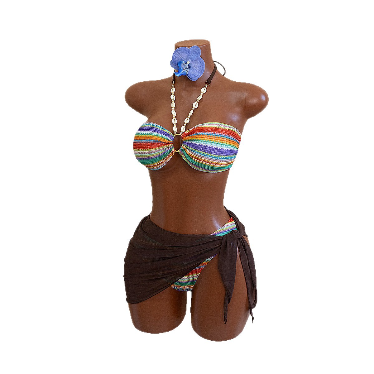 Polyester Bikini & three piece & padded printed striped multi-colored Set