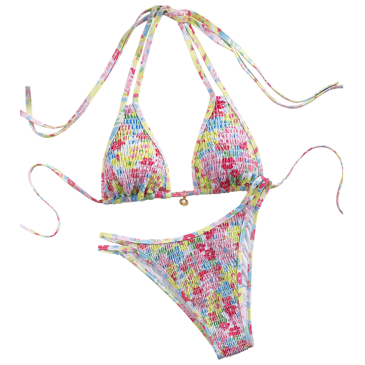 Polyester Bikini backless & two piece printed multi-colored Set