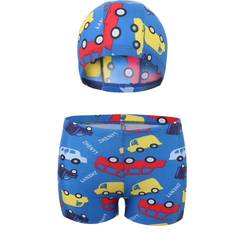 Polyester Boy Kids Swimming Trunks & with swimming cap printed Set