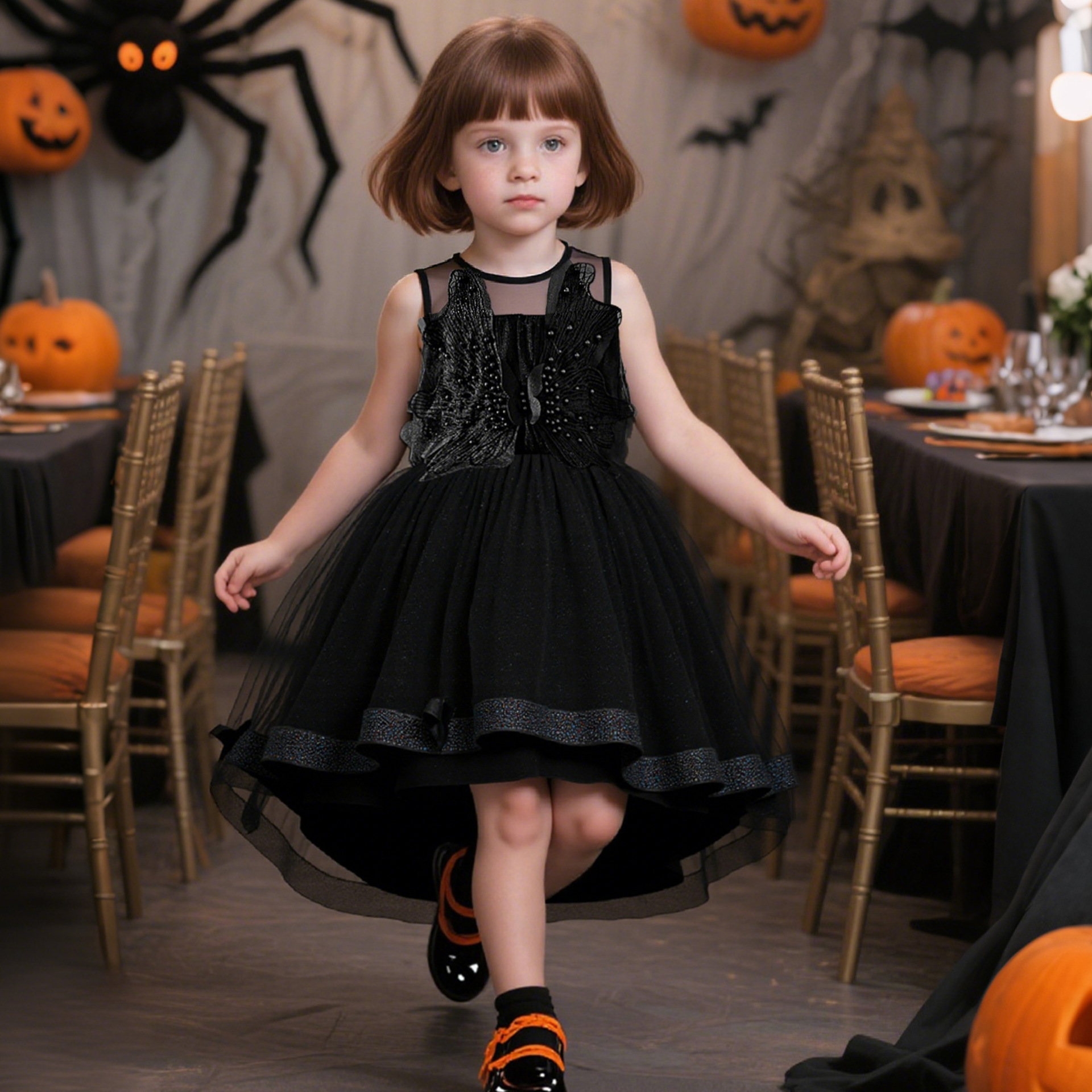 Polyester Ball Gown Children Halloween Cosplay Costume Halloween Design black PC