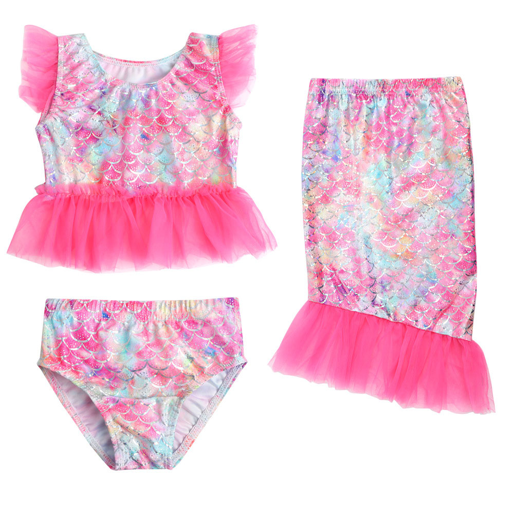 Polyester Children Mermail Swimming Suit & three piece patchwork :150 Set