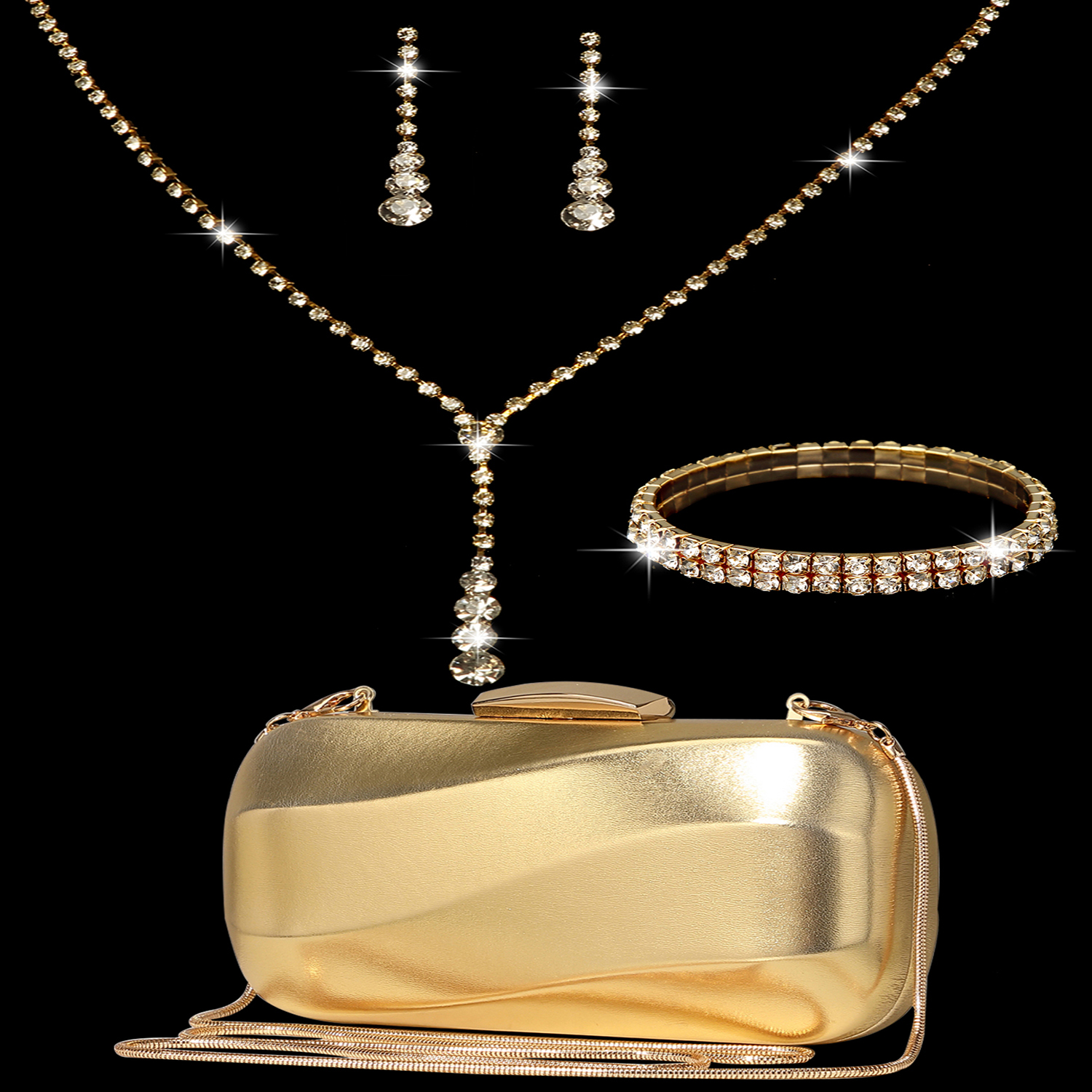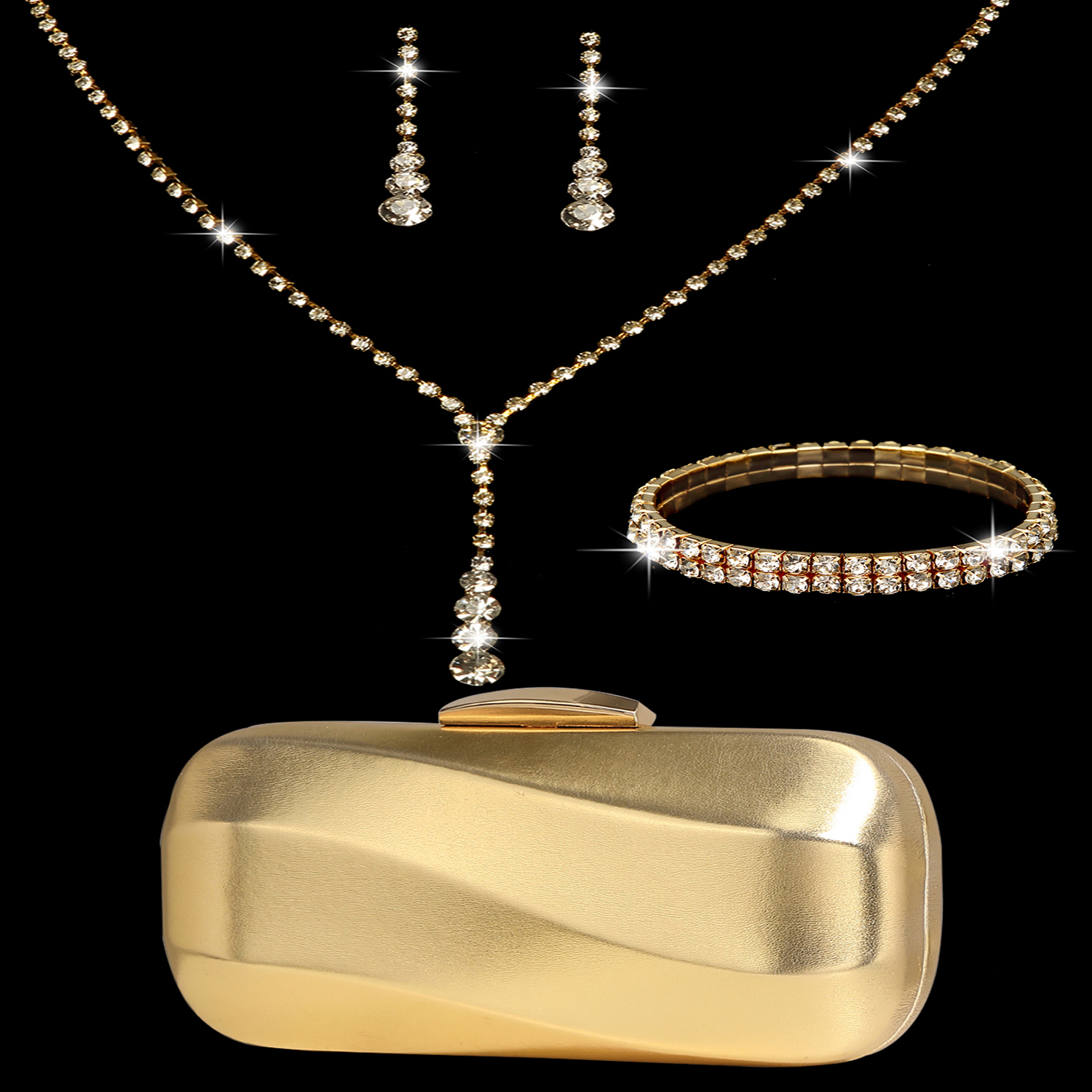 Polyester Evening Party Clutch Bag portable Solid gold PC