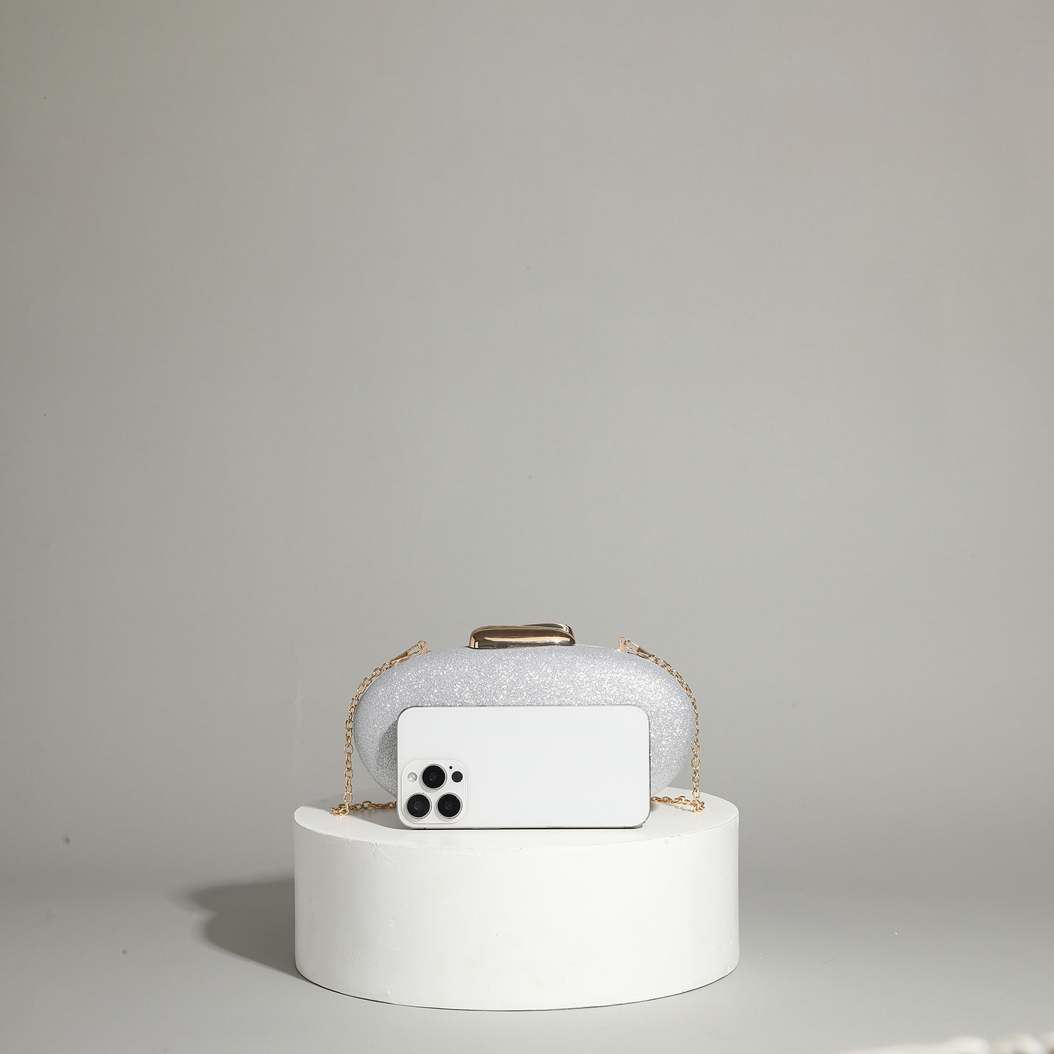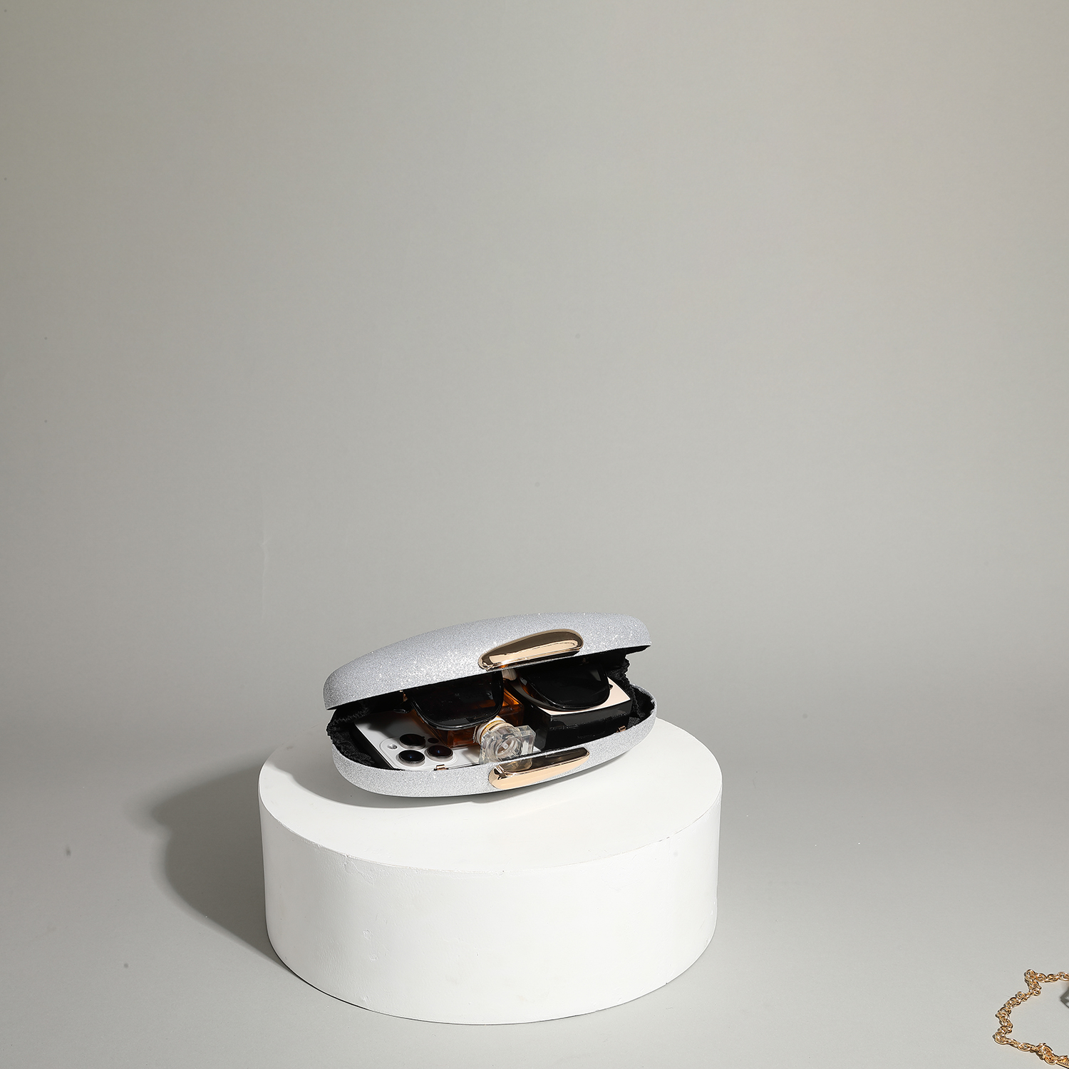 Silk hard-surface Clutch Bag, attached with hanging strap & with rhinestone, Solid, more colors for choice,  PC