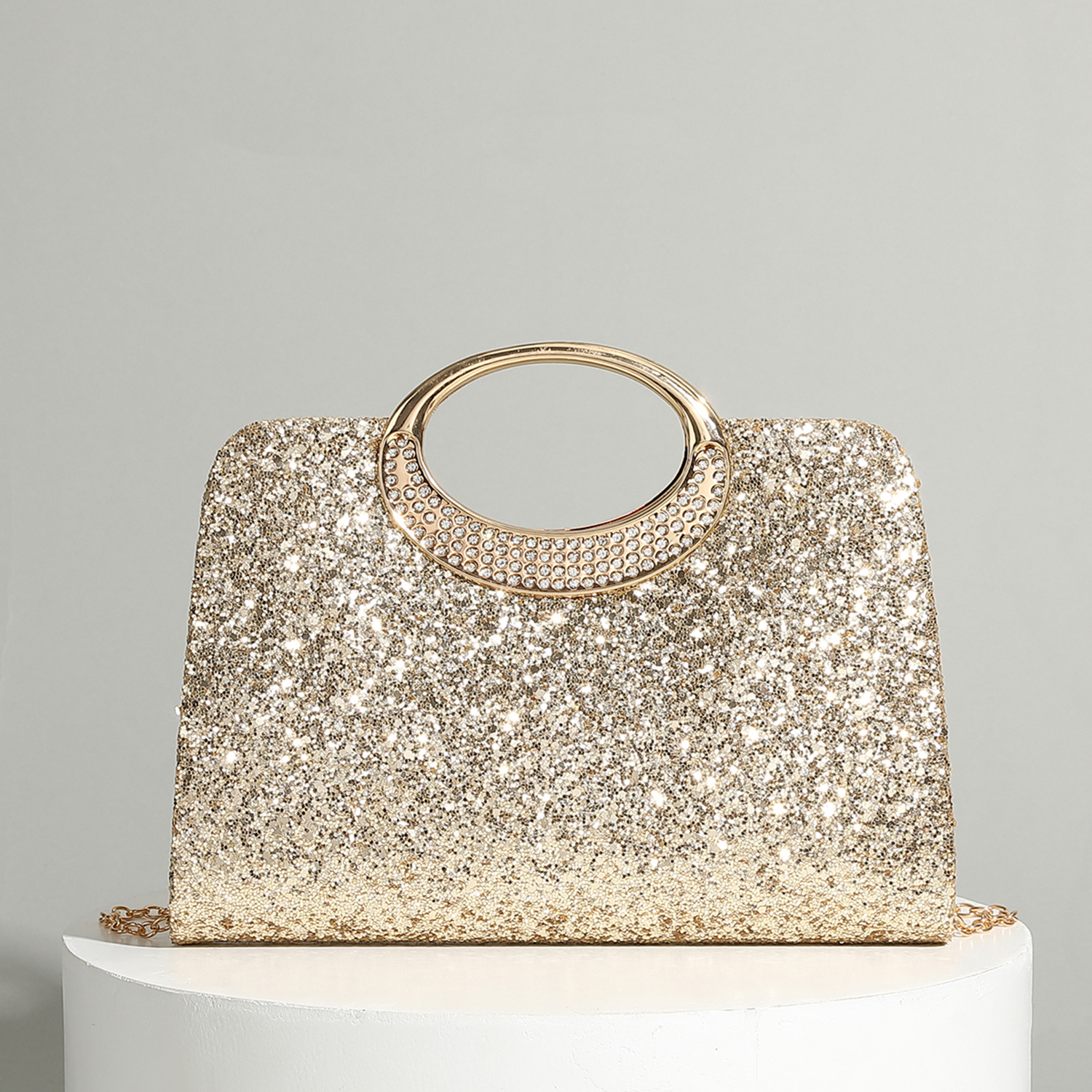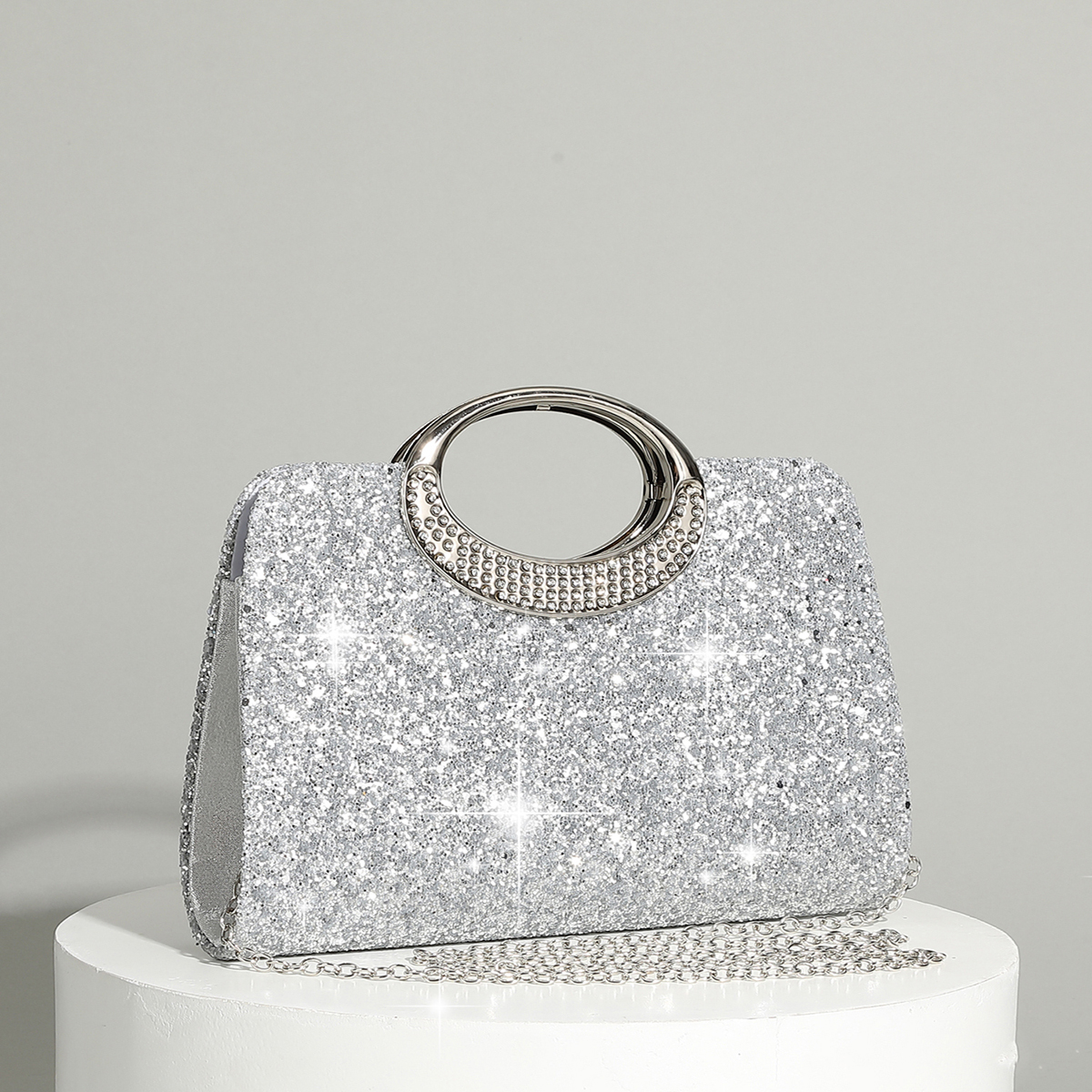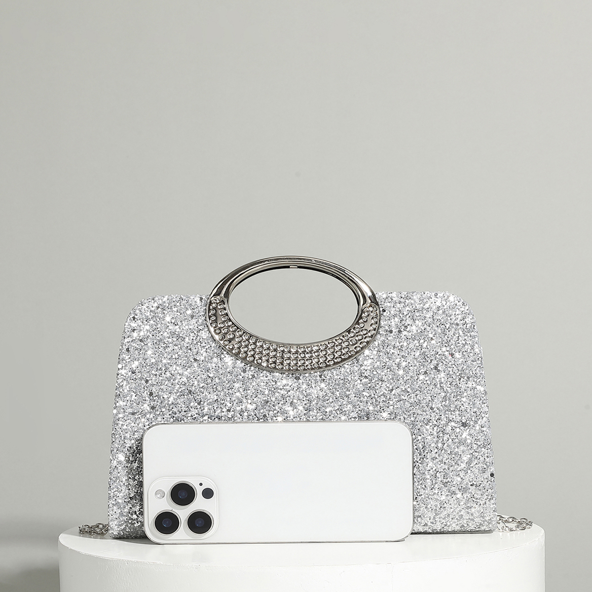 Polyester hard-surface Clutch Bag, attached with hanging strap & with rhinestone, more colors for choice,  PC