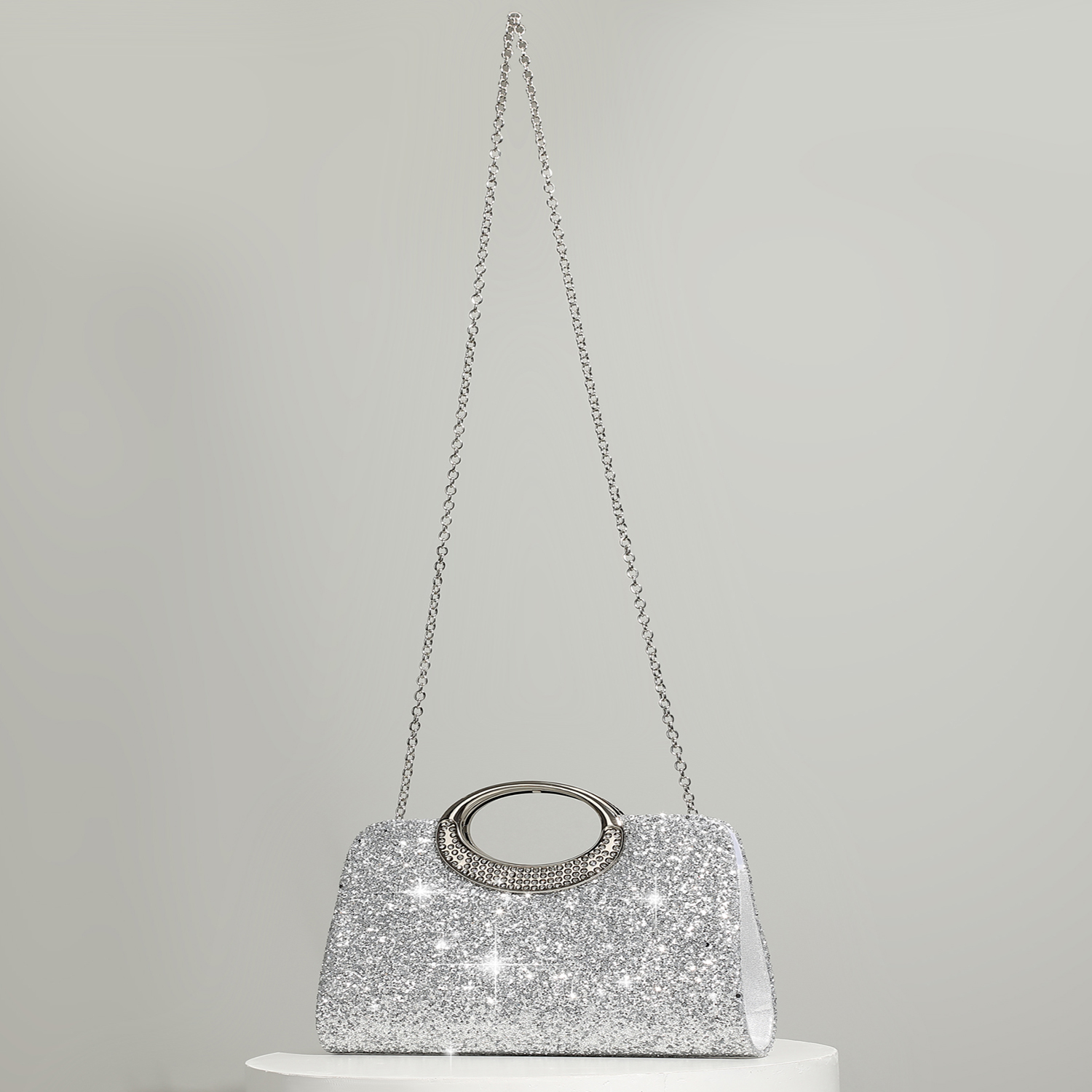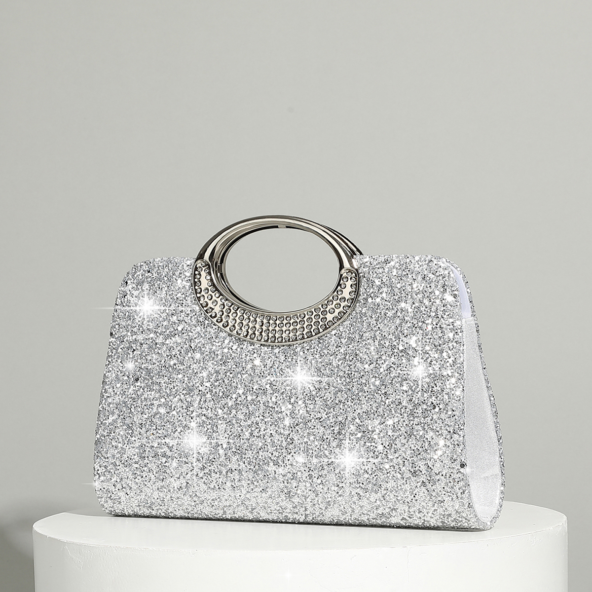 Silk hard-surface Clutch Bag, attached with hanging strap & with rhinestone, Solid, more colors for choice,  PC
