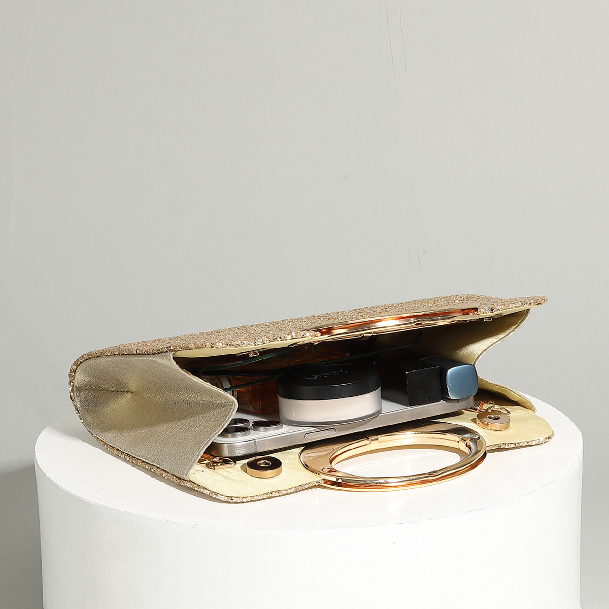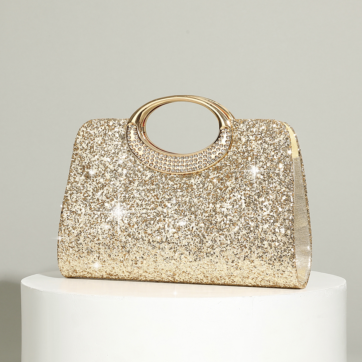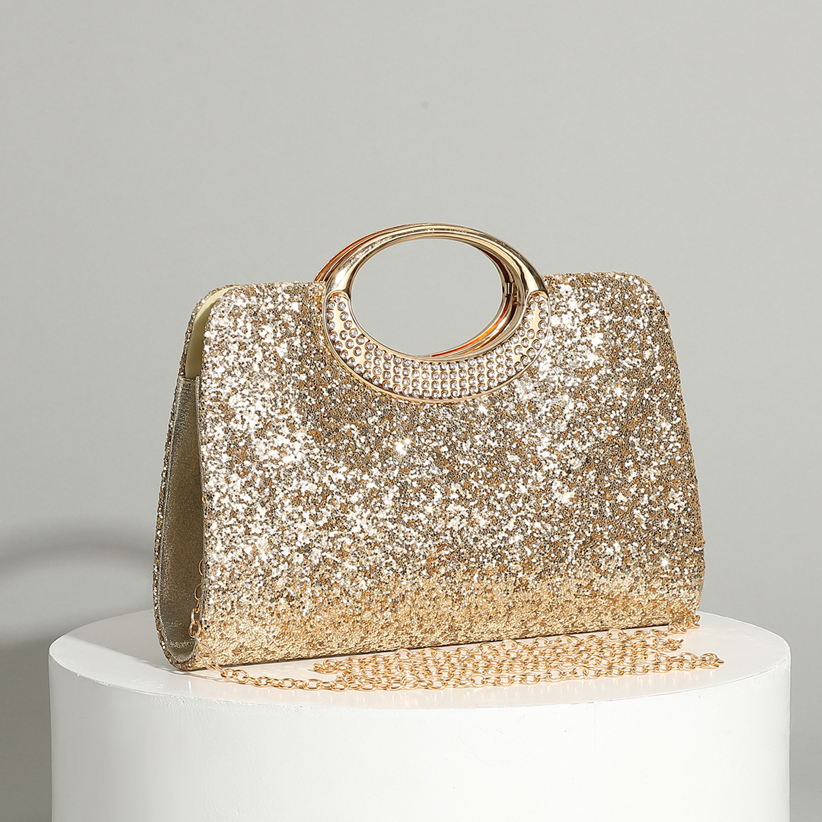 Polyester Evening Party Clutch Bag, circular ring & portable,  Plastic Pearl, gold,  PC