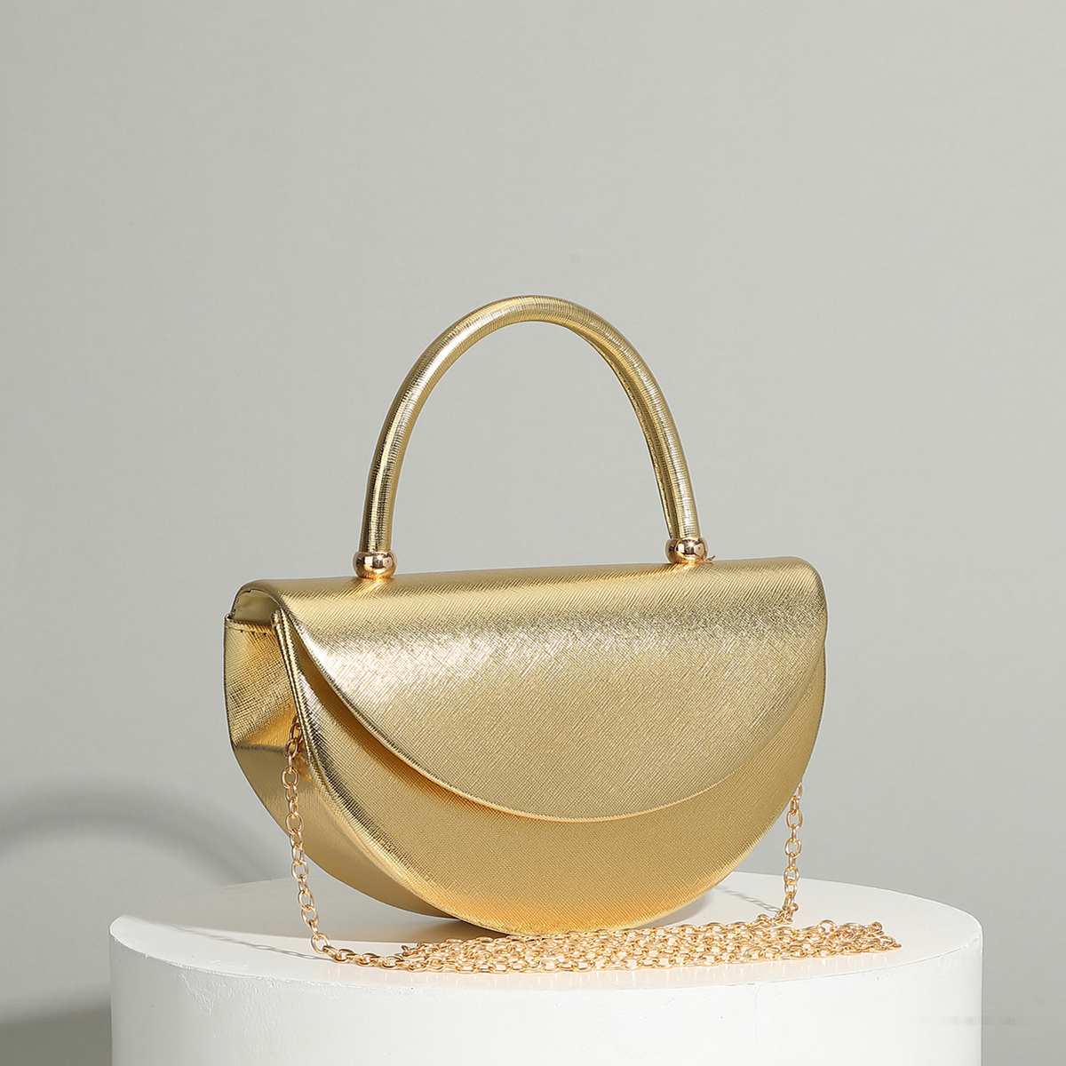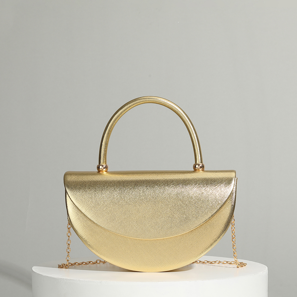 Polyester Evening Party Clutch Bag, circular ring & portable,  Plastic Pearl, gold,  PC