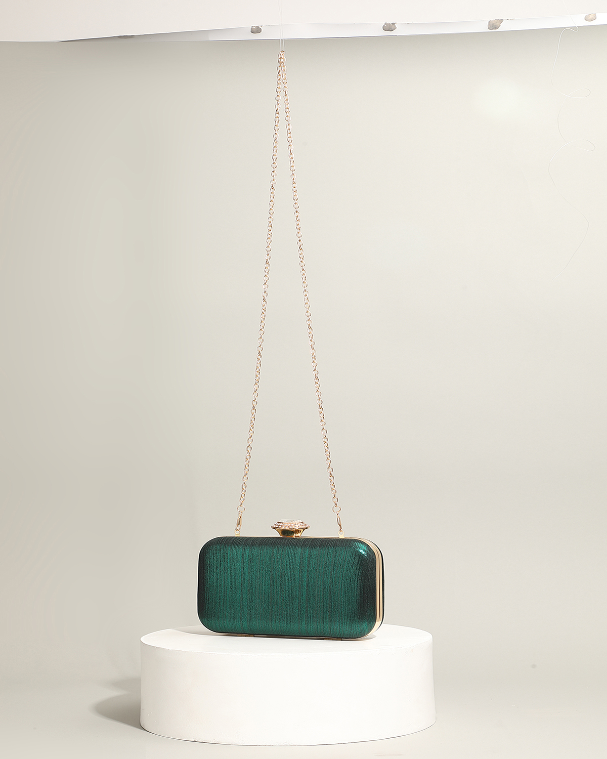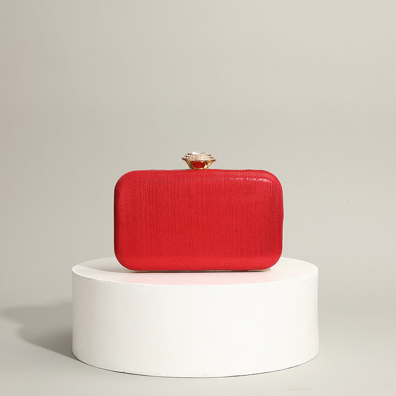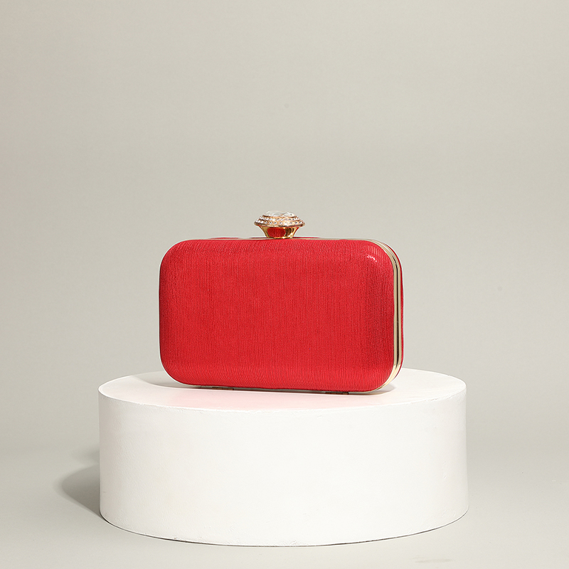 Silk hard-surface Clutch Bag, attached with hanging strap & with rhinestone, Solid, more colors for choice,  PC
