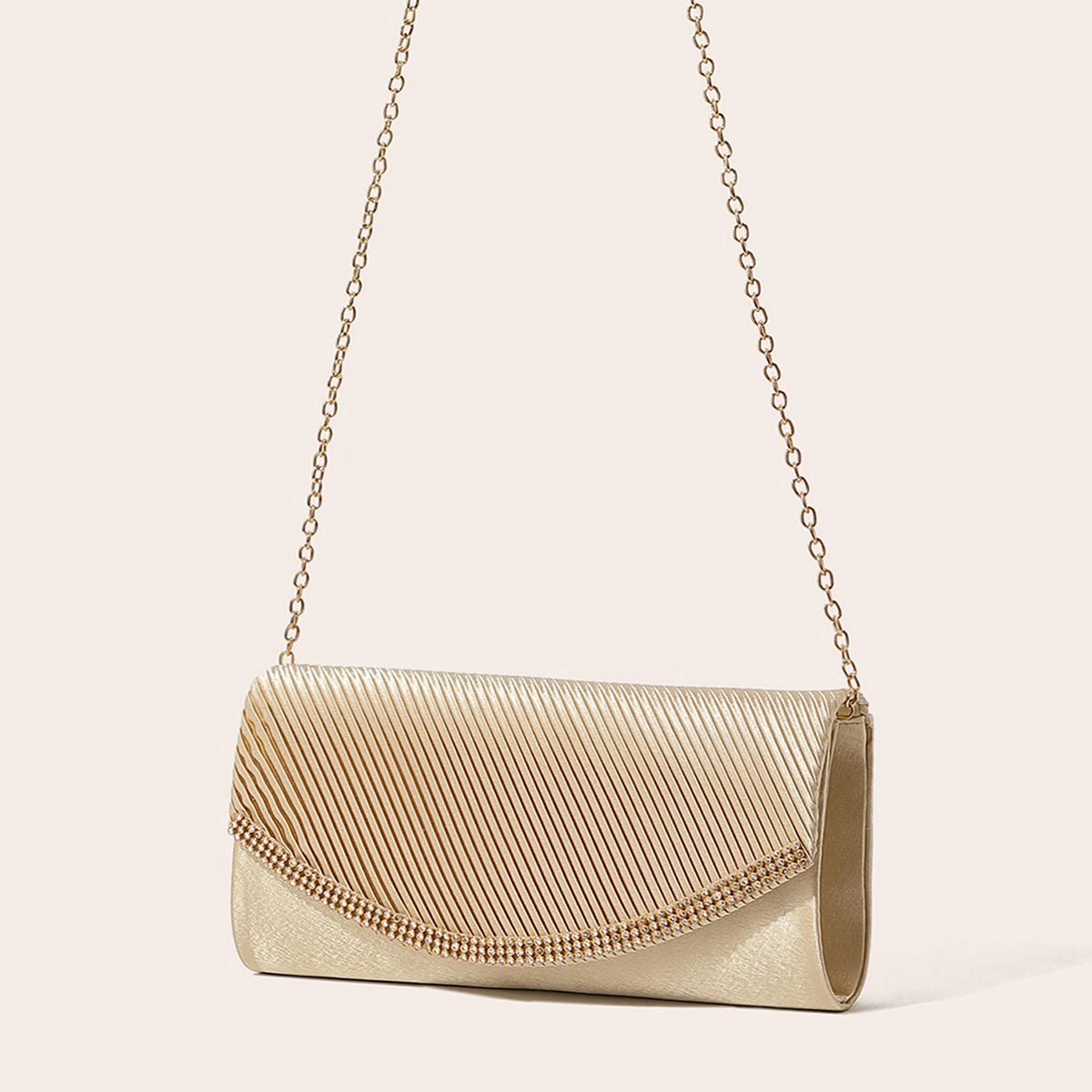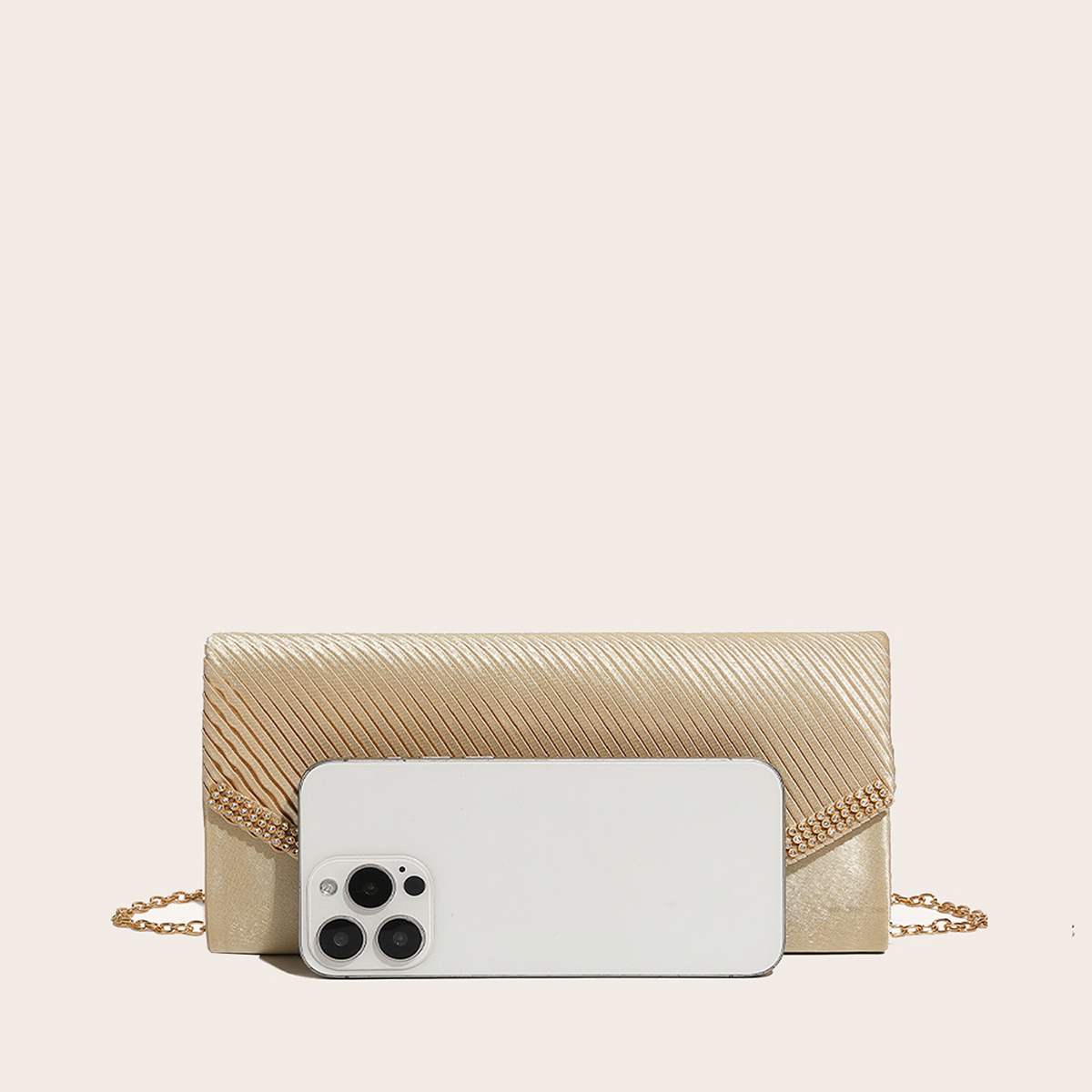 Polyester hard-surface Clutch Bag, attached with hanging strap & with rhinestone, more colors for choice,  PC