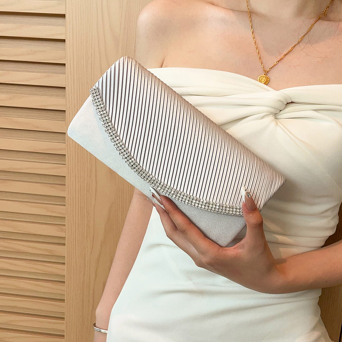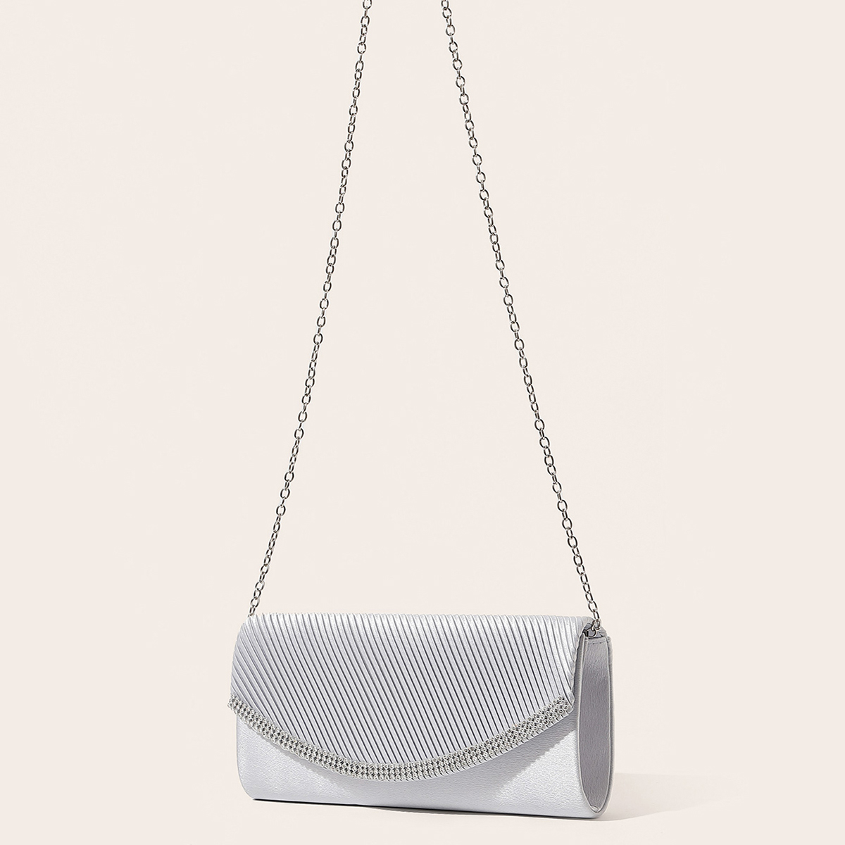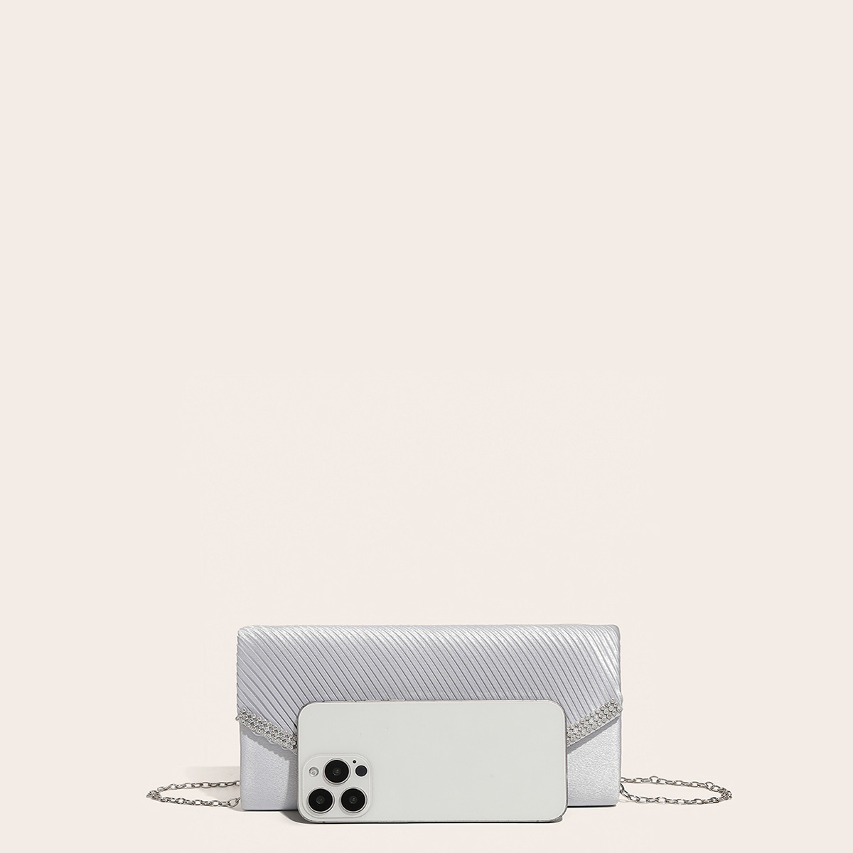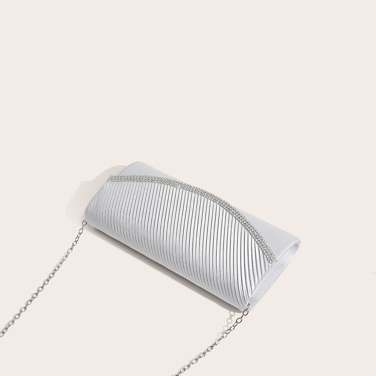 Silk hard-surface Clutch Bag, attached with hanging strap & with rhinestone, Solid, more colors for choice,  PC