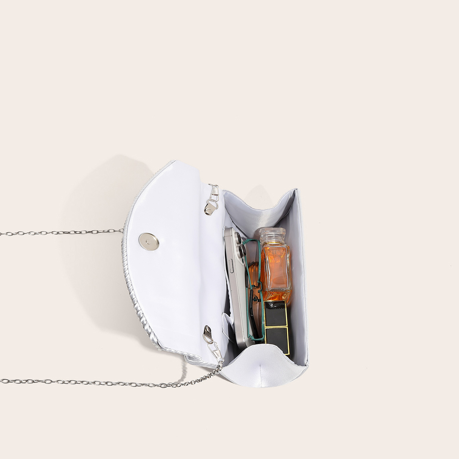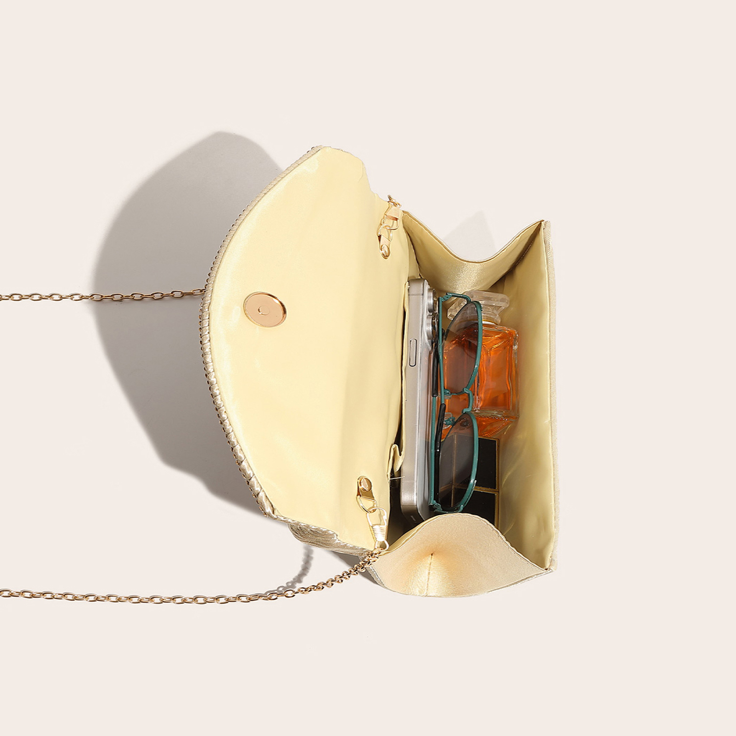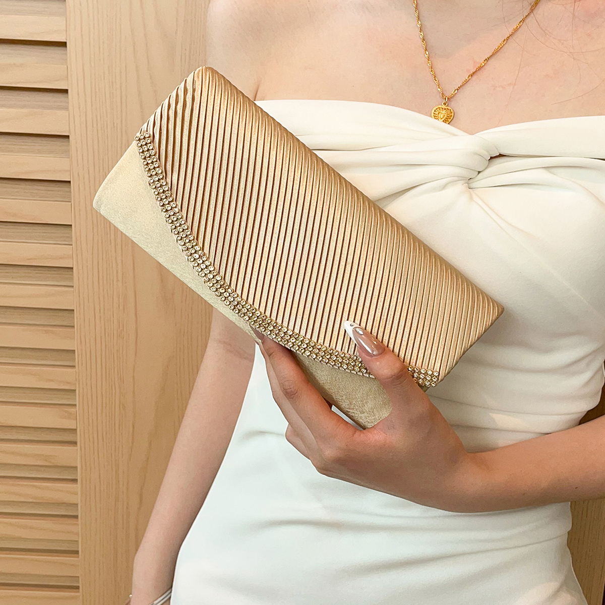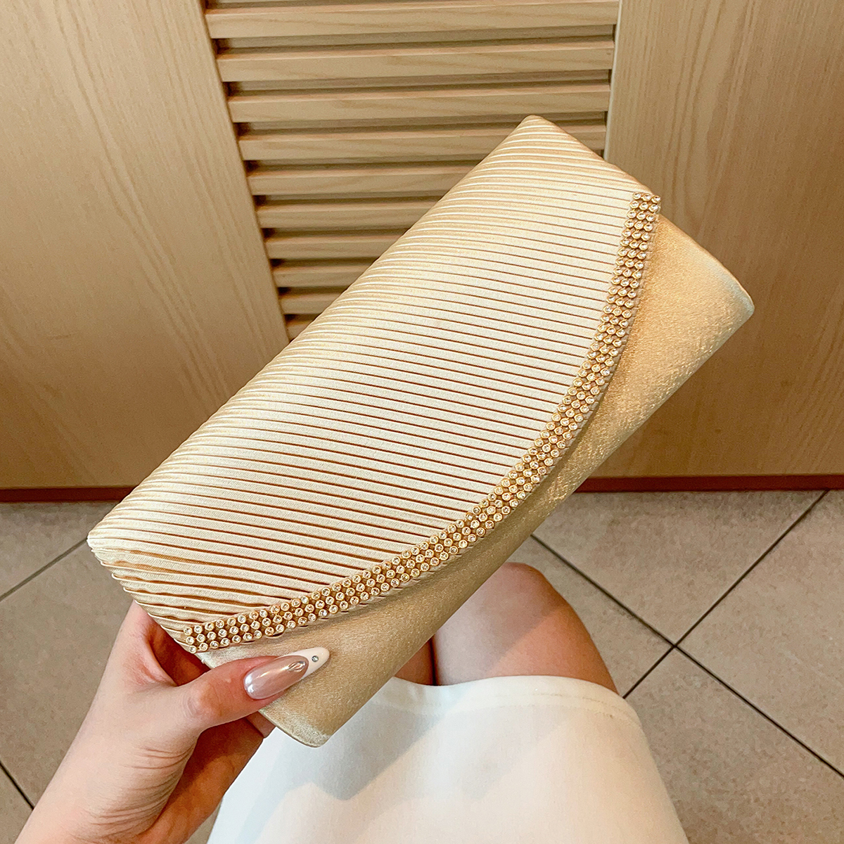 Silk hard-surface Clutch Bag, attached with hanging strap & with rhinestone, Solid, more colors for choice,  PC