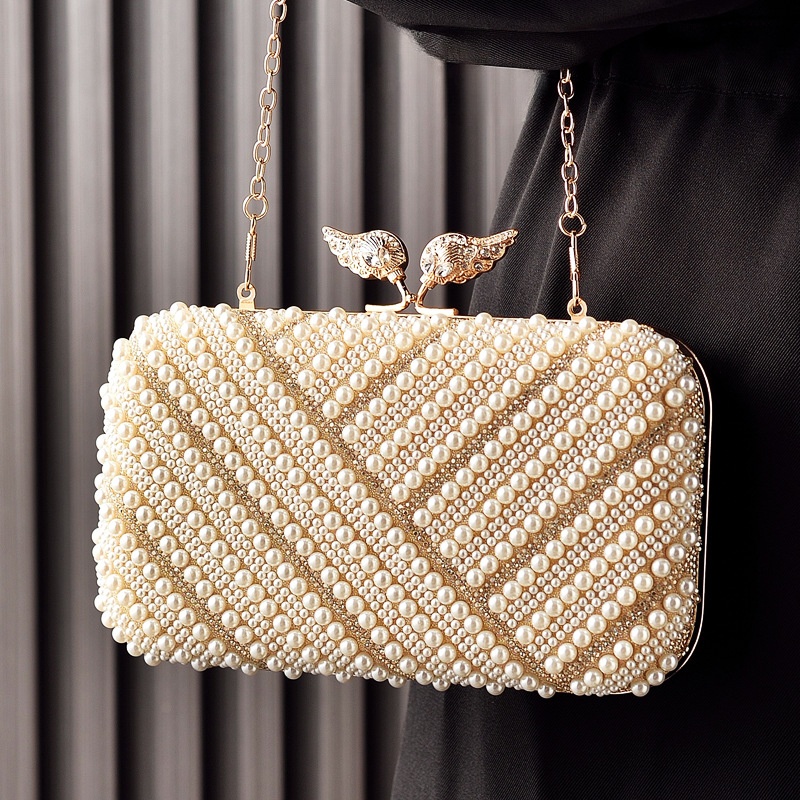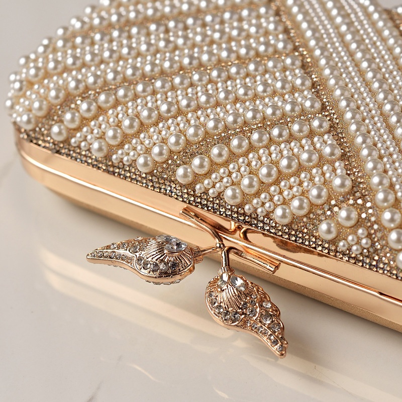 Polyester hard-surface Clutch Bag attached with hanging strap & with rhinestone Plastic Pearl PC